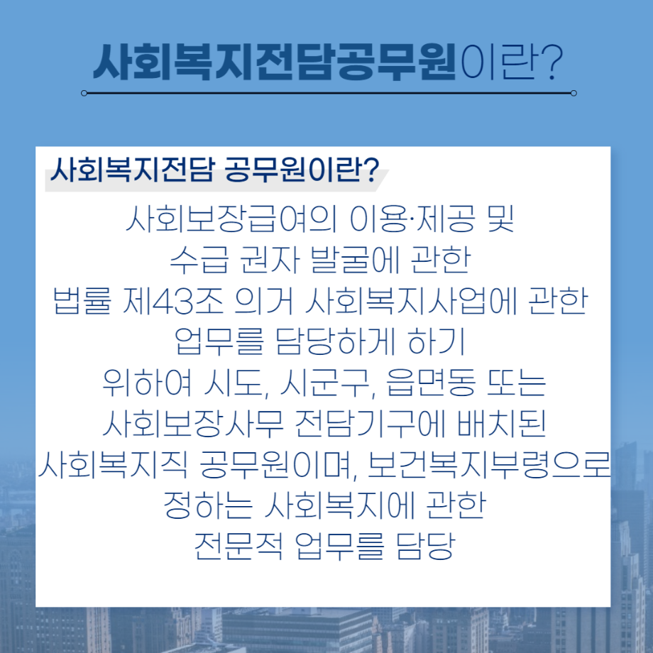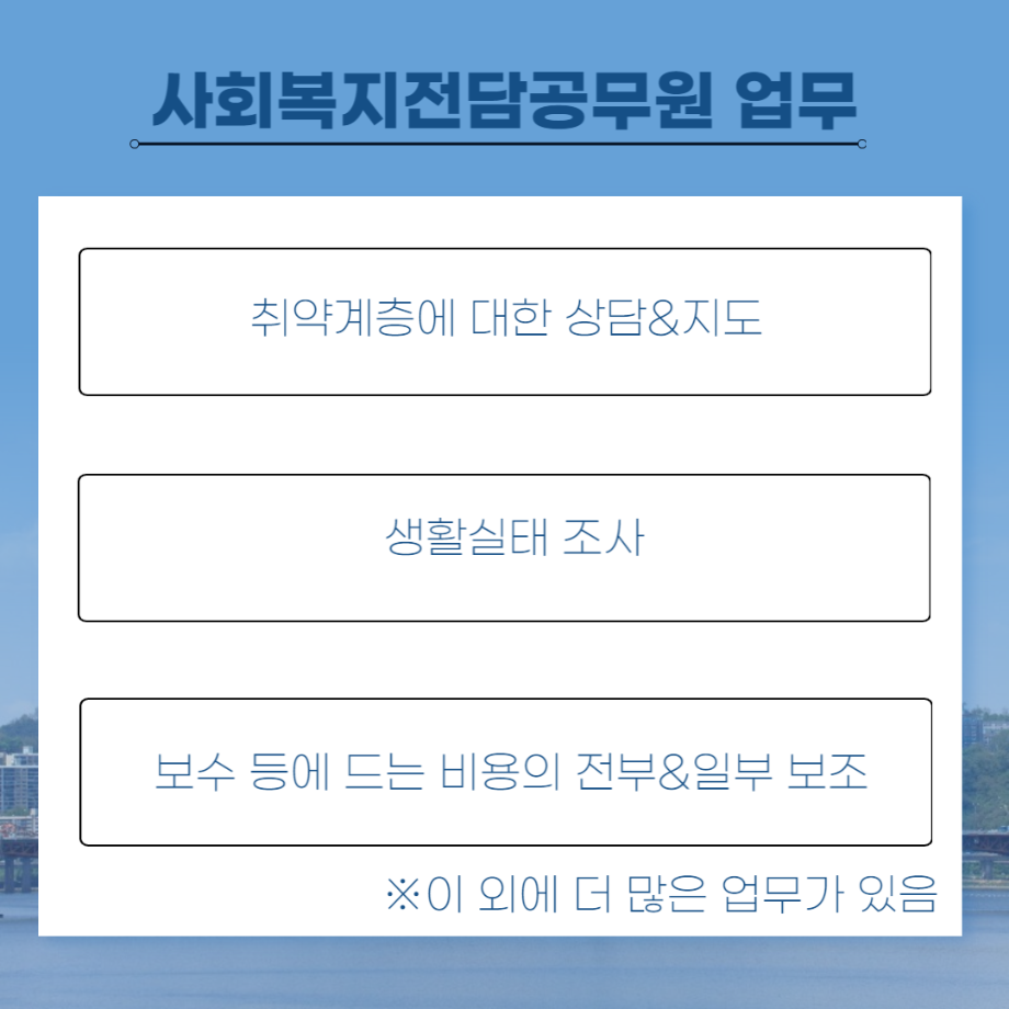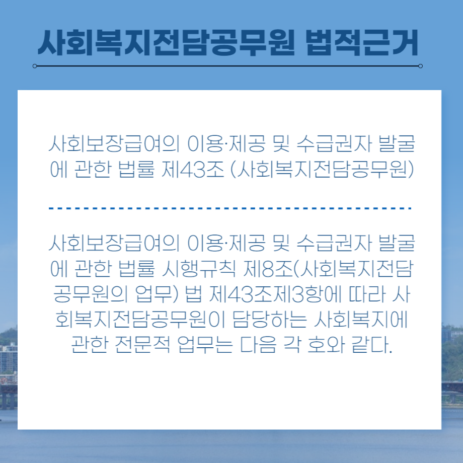본문 시작 홈으로 커뮤니티 학과소개 교수소개 교육과정 현장실습 및 취업정보 커뮤니티 홈페이지가이드 학생 소통 광장 학과공지 학사일정 학생회 동아리 학생 소통 광장 포토갤러리 전공자료실 서식자료실 학생 소통 광장 페이스북 트위터 프린트 세명대학교 사회복지학과 졸업 후 진로 사회복지전담공무원 편 사회복지학과 2975 2022-07-19 세명대학교 사회복지학과 졸업 후 진로 사회복지전담공무원 편입니다. 목록 이전세명대학교 사회복지학과 졸업 후 진로 세이브 더 칠드런 편 다음 세명대학교 사회복지학과 졸업 후 진로 국민건강보험공단 편 담당부서 : 사회복지학과 담당자 : - 연락처 : 043-649-1799 최종수정일 : 2024-10-26 만족도조사 만족도 조사 이 페이지에서 제공하는 정보에 대하여 만족하시나요? 매우만족 만족 보통 불만족 매우불만족