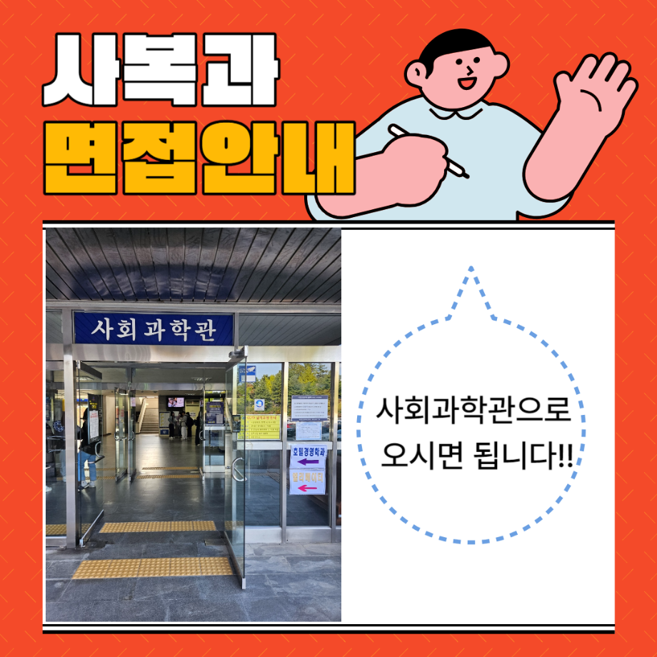 본문 시작 홈으로 커뮤니티 학과소개 교수소개 교육과정 현장실습 및 취업정보 커뮤니티 홈페이지가이드 학생 소통 광장 학과공지 학사일정 학생회 동아리 학생 소통 광장 포토갤러리 전공자료실 서식자료실 학생 소통 광장 페이스북 트위터 프린트 세명대학교 사회복지학과 오늘은 면접이 있어요!! 사회복지학과 4723 2023-10-13 '세명대학교 사회복지학과 오늘은 면접이 있어요!!' 편입니다. 목록 이전세명대학교 사회복지학과 실습 알려줄게! 다음 세명대학교 사회복지학과 면접응원 담당부서 : 사회복지학과 담당자 : - 연락처 : 043-649-1799 최종수정일 : 2024-10-26 만족도조사 만족도 조사 이 페이지에서 제공하는 정보에 대하여 만족하시나요? 매우만족 만족 보통 불만족 매우불만족