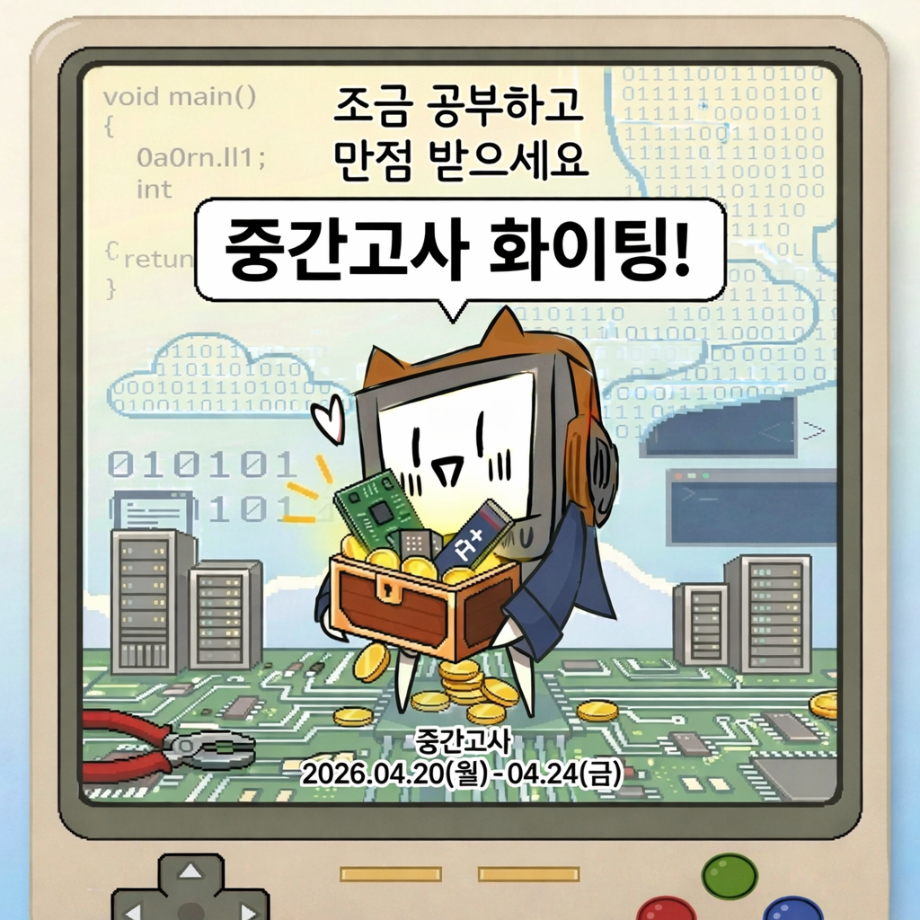본문 시작 홈으로 학부활동 학부소개 학부활동 교육과정 커뮤니티 학부생활 입학안내 홈페이지가이드 학부갤러리 학부행사 학생회 활동 전공 동아리 학부갤러리 학부갤러리 페이스북 트위터 프린트 🔥🔥 중간고사 모드 ON 🔥🔥 컴퓨터학부 24 2026-04-20 중간고사 기간 : 4/20 ~ 4/24 지금까지 해온 것만으로도 충분합니다 조금만 더 힘내서, 끝까지 파이팅 💪 목록 이전IT 에서 AI로, "AI융합대학" 으로 바뀌었습니다. 다음 🌸 세명대에 봄이 로그인했습니다 🌸 담당부서 : 컴퓨터학부 담당자 : - 연락처 : 043-649-1272 최종수정일 : 2024-10-26 만족도조사 만족도 조사 이 페이지에서 제공하는 정보에 대하여 만족하시나요? 매우만족 만족 보통 불만족 매우불만족