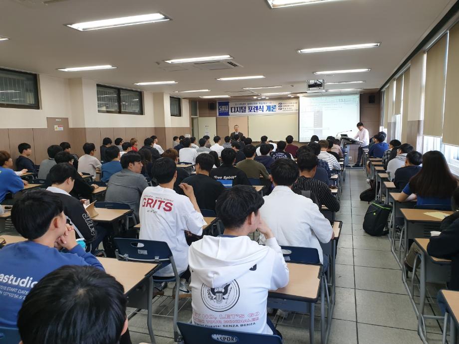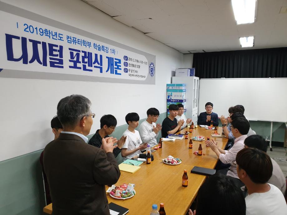 1부 학술특강 – 130여명 참석. “디지털 포렌직 개론”이란 주제로 국과수(국립과학수사연구원) 박남인 박사님이 강연(2시간). 구과수 디지털분석과의 업무내용을 다양한 실사례 중심으로 강의하고, 디지털 포렌직 분야로 진출하기 위한 방법과 준비 과정 등을 설명하여 학생들의 큰 호응을 얻었다.