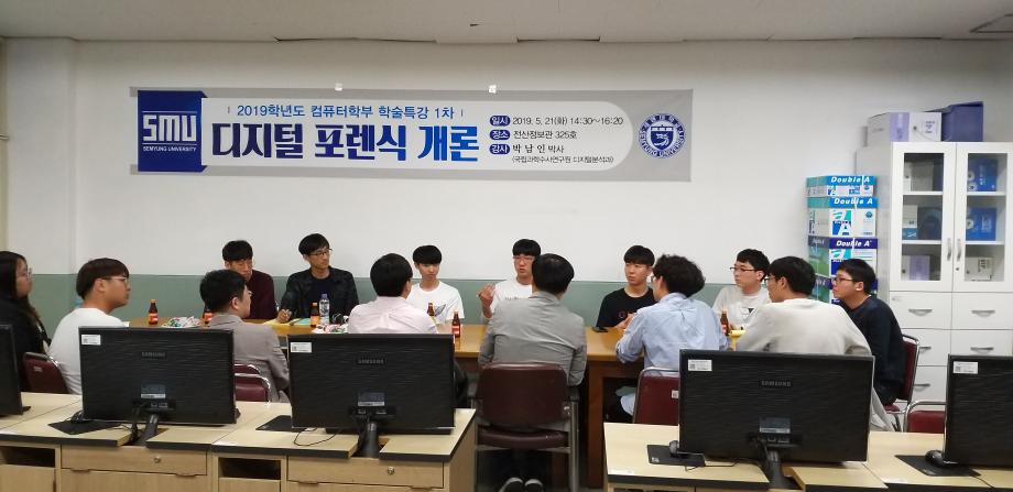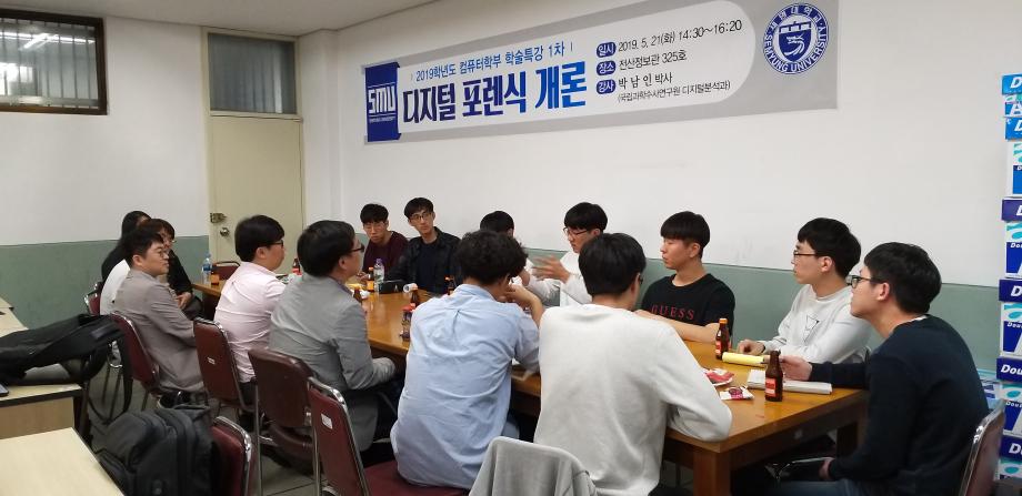 2부 학생들과의 간담회 – 디지털 포렌직 관련 경진대회 준비하는 학생들과 디지털 포렌직 분야로 진출을 생각하는 학생 12명을 대상으로 질의 응답으로 1시간동안 간담회 진행.