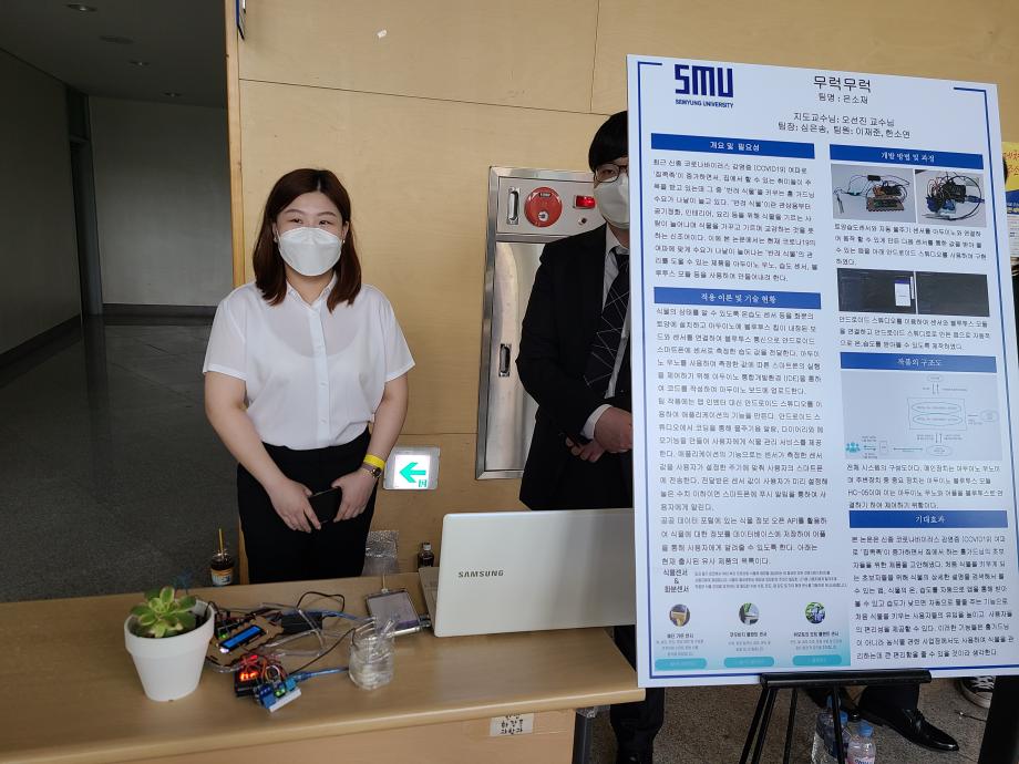 본문 시작 홈으로 SMIT 소식 SMIT 소개 SMIT 교육 SMIT 취업 SMIT 소식 SMIT 입학 홈페이지가이드 경진대회 공지사항 갤러리 경진대회 동아리 경진대회 페이스북 트위터 프린트 2021 캡스톤디자인 장려상 아두이노 습도센서를이용한식물케어 스마트IT학부 4419 2021-09-01 장려상 - 작품명 : 아두이노 습도센서를이용한식물케어 - 지도교수 : 오선진 - 팀원 : 심은송, 이재준, 한소연 코로나19 여파로 ‘집콕족'이 증가하면서 집에서 하는 홈가드닝의 초보자들을 위한 제품을 고안해냈다. 처음 식물을 키우게 되는 초보자들을 위해 센서를 이용하여 앱으로 받아보며 쉬운 식물관리를 도와줄 수 있는 제품을 개발하였다. 목록 이전2020-06-17 온라인 캡스톤디자인 경진대회 다음 2021 캡스톤디자인 장려상 LoRa를 이용한 킥보드 공유서비스 담당부서 : 스마트IT학부 담당자 : - 연락처 : 043-649-1275 최종수정일 : 2024-10-26 만족도조사 만족도 조사 이 페이지에서 제공하는 정보에 대하여 만족하시나요? 매우만족 만족 보통 불만족 매우불만족