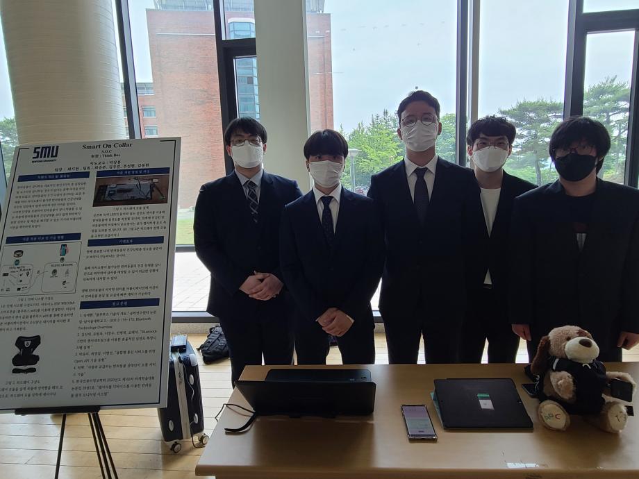 본문 시작 홈으로 SMIT 소식 SMIT 소개 SMIT 교육 SMIT 취업 SMIT 소식 SMIT 입학 홈페이지가이드 경진대회 공지사항 갤러리 경진대회 동아리 경진대회 페이스북 트위터 프린트 2021 캡스톤디자인 우수상 Smart On Collar (S.O.C) 스마트IT학부 5327 2021-09-01 우수상 - 작품명 : Smart On Collar (S.O.C) - 지도교수 : 박상봉 - 팀원 : 최지현, 최승준, 김우진, 김도현, 추성현 최근 반려동물과 함께 사는 사람들의 추세가 늘어남과 더불어 반려동물의 건강에 대한 관심도 높아지고 있다. 반려동물에 치명적 단점인 사람과 의사소통이 불가능해 급사하는 경우가 생기는데 이러한 단점을 보완하고자 펫 웨어러블 장비를 개발하였다. 목록 이전2021 캡스톤디자인 우수상 Arduino 기반 자동 높이 조절기능의 안면 체온 측정 장치 다음 2021 캡스톤디자인 최우수상 아이백 담당부서 : 스마트IT학부 담당자 : - 연락처 : 043-649-1275 최종수정일 : 2024-10-26 만족도조사 만족도 조사 이 페이지에서 제공하는 정보에 대하여 만족하시나요? 매우만족 만족 보통 불만족 매우불만족
