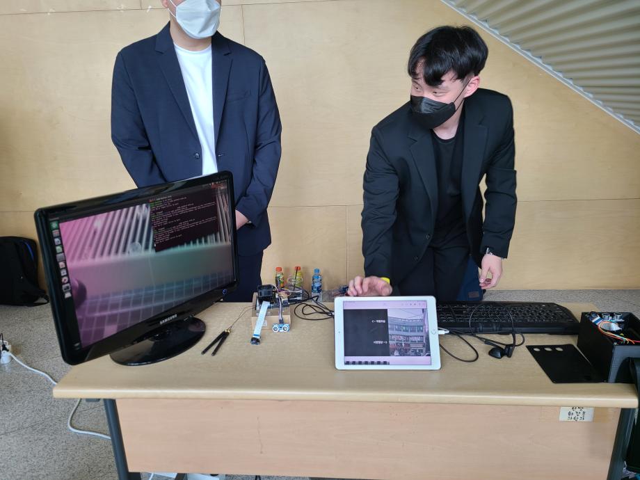 본문 시작 홈으로 SMIT 소식 SMIT 소개 SMIT 교육 SMIT 취업 SMIT 소식 SMIT 입학 홈페이지가이드 경진대회 공지사항 갤러리 경진대회 동아리 경진대회 페이스북 트위터 프린트 2021 캡스톤디자인 최우수상 아이백 스마트IT학부 5604 2021-09-01 최우수상 - 작품명 : 아이백 (Eye-Bag) - 지도교수 : 송미화 - 팀원 : 박민이, 구현모, 함석봉, 신봉재 시각장애인이 보행 시 가장 큰 불편을 겪는 횡단보도 보행에 초점을 맞춰 신호등을 인식해 안전하게 걸을 수 있도록 음성 인터페이스를 제공하는 가방 형태의 IoT 기기로 설계 및 제작하였다 목록 이전2021 캡스톤디자인 우수상 Smart On Collar (S.O.C) 이전2021.06.10 제22회 캡스톤디자인 전시회 담당부서 : 스마트IT학부 담당자 : - 연락처 : 043-649-1275 최종수정일 : 2024-10-26 만족도조사 만족도 조사 이 페이지에서 제공하는 정보에 대하여 만족하시나요? 매우만족 만족 보통 불만족 매우불만족