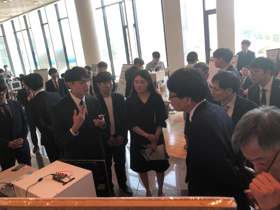본문 시작 홈으로 SMIT 소식 SMIT 소개 SMIT 교육 SMIT 취업 SMIT 소식 SMIT 입학 홈페이지가이드 경진대회 공지사항 갤러리 경진대회 동아리 경진대회 페이스북 트위터 프린트 2019-06-04 캡스톤 디자인 경진대회 정보통신학부 8191 2019-06-17 2019년 06월 04일 교내 학술관 1층로비 및 112호 세미나실에서 정보통신학부 캡스톤디자인경진대회가 진행되었습니다. 4학년 재학생들이 4년동안 학습한 지식의 미무리 단계로서 IT제품을 만들고 발표하여 졸업 후 산업현장에서 진행해야 하는 프로젝트 업무를 간접적으로 느낄 수 있는 뜻 깊은 자리 였습니다. 작품발표를 보며 1, 2, 3학년 재학생들은 기술을 습득하고 교류할 수 있는 좋은 기회였습니다. 목록 이전2018-06-05 캡스톤 디자인 경진대회 다음 2020-06-17 온라인 캡스톤디자인 경진대회 담당부서 : 스마트IT학부 담당자 : - 연락처 : 043-649-1275 최종수정일 : 2024-10-26 만족도조사 만족도 조사 이 페이지에서 제공하는 정보에 대하여 만족하시나요? 매우만족 만족 보통 불만족 매우불만족