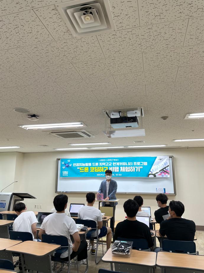 본문 시작 홈으로 SMIT 소식 SMIT 소개 SMIT 교육 SMIT 취업 SMIT 소식 SMIT 입학 홈페이지가이드 갤러리 공지사항 갤러리 경진대회 동아리 갤러리 페이스북 트위터 프린트 1차 제천제일고등학교 "드론 코딩하고 비행 체험하기" 정보통신학부 3937 2021-08-02 “ 인공지능활용 드론 지역고교 연계커뮤니티 프로그램 - 드론 코딩하고 비행 체험하기 ” 07월 19일(월) 학술관 101호에서 스마트IT학부는 “드론 코딩하고 비행 체험하기” 프로그램을 진행하였다. 해당 프로그램은 8월19일(목) 진행 예정인 “2021SM스마트 드론 레이싱 경진대회”와 관련하여 신청자중 사전 교육을 희망하는 팀을 대상으로 하여 진행되었으며 참여 학생들은 높은 만족도를 보였다. 참여고등학교 : 제천제일고등학교 목록 이전2022학년도 스마트IT학부 리플렛 다음 2차 디지털전자고등학교, 세명고등학교 "드론 코딩하고 비행 체험하기" 담당부서 : 스마트IT학부 담당자 : - 연락처 : 043-649-1275 최종수정일 : 2024-10-26 만족도조사 만족도 조사 이 페이지에서 제공하는 정보에 대하여 만족하시나요? 매우만족 만족 보통 불만족 매우불만족