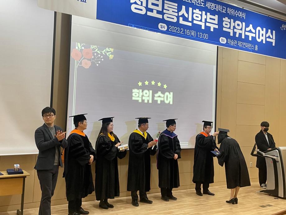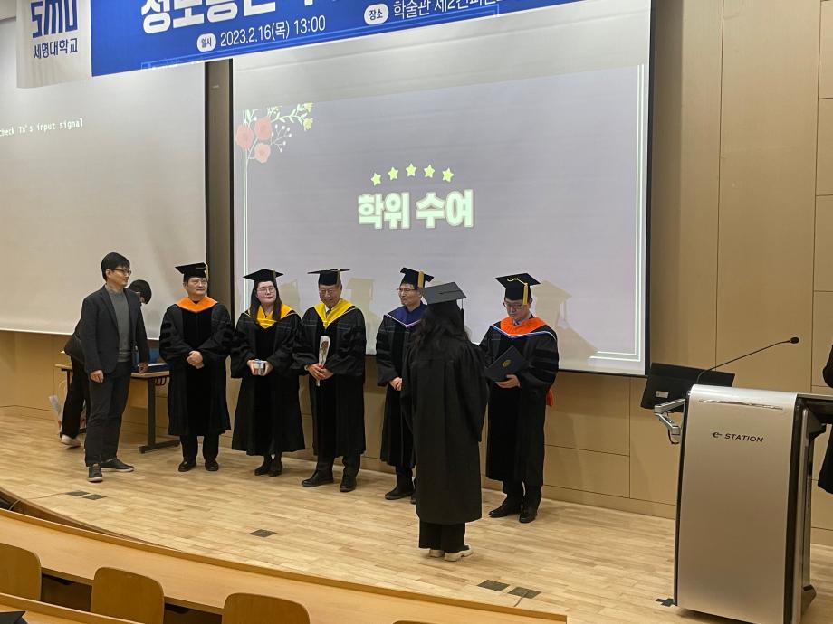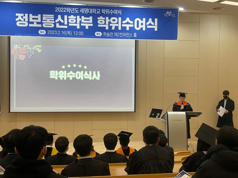 본문 시작 홈으로 SMIT 소식 SMIT 소개 SMIT 교육 SMIT 취업 SMIT 소식 SMIT 입학 홈페이지가이드 갤러리 공지사항 갤러리 경진대회 동아리 갤러리 페이스북 트위터 프린트 스마트IT학부 전기 학위수여식 스마트IT학부 4410 2023-02-16 스마트IT학부는 2023년 2월16일(목) 학술관 제2컨퍼런스 홀에서 전기 학위 수여식이 진행되었다. 학위 수여식은 교수님들의 학사행렬 입장으로 시작 되었으며. 학부장님의 학위수여식사, 학위 수여, 마무리 행사로 학사모 던지기로 진행되었다. 조면균 학부장님은 "드높은 자존감을 갖고 사회생활을 하며 미래 비전과 목표를 설정하고 성실한 사람이 되길 바란다" 라고 전했다. 목록 이전스마트IT학부 동계방학 특별활동 시행 다음 2023학년도 꿈 설계학기 1일차 담당부서 : 스마트IT학부 담당자 : - 연락처 : 043-649-1275 최종수정일 : 2024-10-26 만족도조사 만족도 조사 이 페이지에서 제공하는 정보에 대하여 만족하시나요? 매우만족 만족 보통 불만족 매우불만족