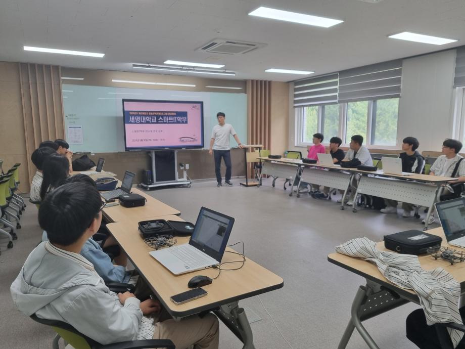본문 시작 홈으로 SMIT 소식 SMIT 소개 SMIT 교육 SMIT 취업 SMIT 소식 SMIT 입학 홈페이지가이드 갤러리 공지사항 갤러리 경진대회 동아리 갤러리 페이스북 트위터 프린트 제천제일고 전공체험활동!! 스마트IT학부 2681 2024-06-03 안녕하세요 세명대학교 스마트IT학부입니다☺ 2024년 5월 30일에 제천제일고등학교 학생들의 전공 체험 활동을 진행하였습니다! 제일고등학교에서 온 학생들의 전공체험을 위해 코딩 및 드론 체험 진행했습니다. 잘 따라와준 학생들에게는 소정의 상품도 증정하였던 매우 열정적인 시간이었습니다!❤️🔥❤️🔥 함께한 친구들 모두 세명대에서 다시 만날 수 있길 바라요🤗 목록 이전2024 부트캠프 시행 다음 2024학년도 졸업작품 전시회 개최 담당부서 : 스마트IT학부 담당자 : - 연락처 : 043-649-1275 최종수정일 : 2024-10-26 만족도조사 만족도 조사 이 페이지에서 제공하는 정보에 대하여 만족하시나요? 매우만족 만족 보통 불만족 매우불만족