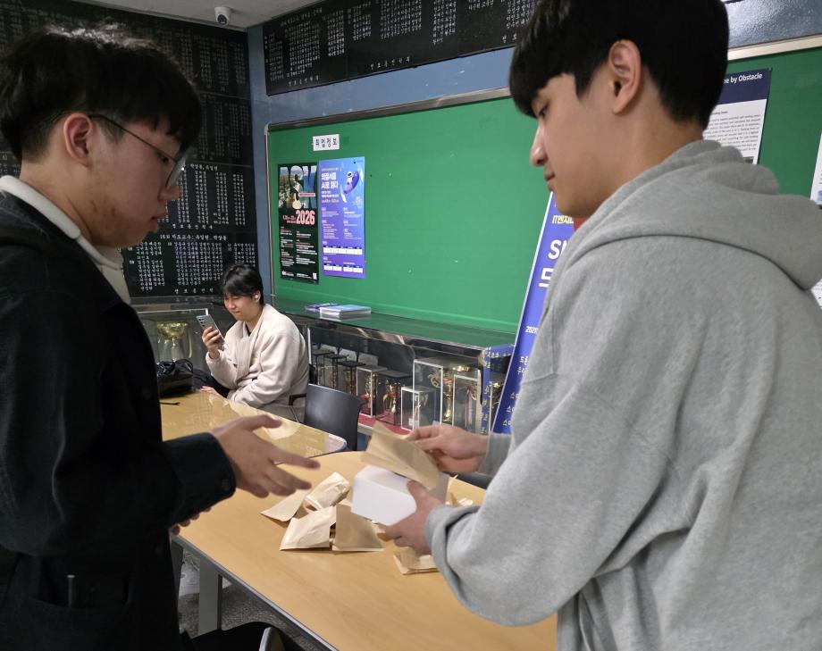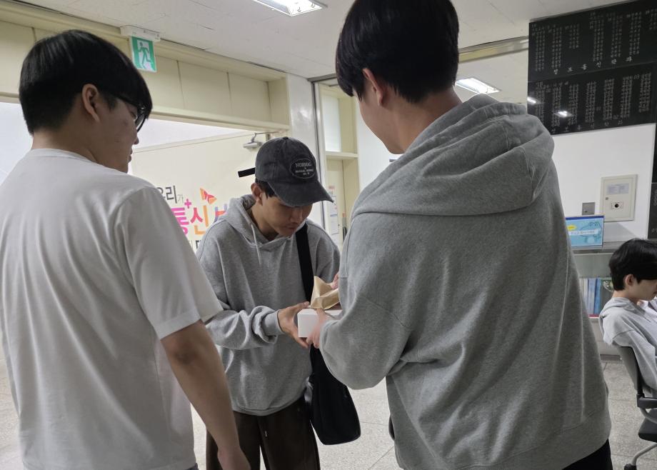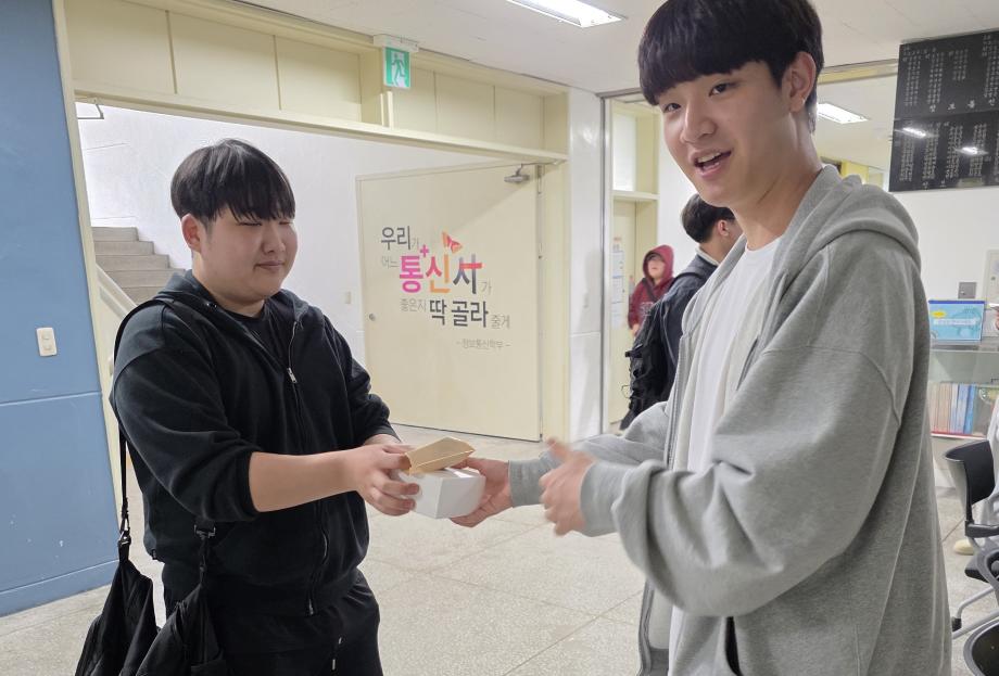 본문 시작 홈으로 SMIT 소식 SMIT 소개 SMIT 교육 SMIT 취업 SMIT 소식 SMIT 입학 홈페이지가이드 갤러리 공지사항 갤러리 경진대회 동아리 갤러리 페이스북 트위터 프린트 2026학년도 스마트IT학부 중간고사 간식나눔 이벤트👊 스마트IT학부 21 2026-04-20 안녕하세요 세명대학교 스마트IT학부입니다😀 2026년 4월 20일 신입생들을 위해 중간고사 응원 간식 나눔 행사를 진행하였습니다. 작은 선물이지만 열심히 준비한 만큼 맛있게 드셔주셔서 감사드리며, 머지않은 중간고사, 학우분들 화이팅하시고 노력한만큼 좋은 결과로 보답받으시길 응원합니다👊 목록 이전스마트IT알림_4월 : 스마트IT학부 졸업요건 담당부서 : 스마트IT학부 담당자 : - 연락처 : 043-649-1275 최종수정일 : 2024-10-26 만족도조사 만족도 조사 이 페이지에서 제공하는 정보에 대하여 만족하시나요? 매우만족 만족 보통 불만족 매우불만족