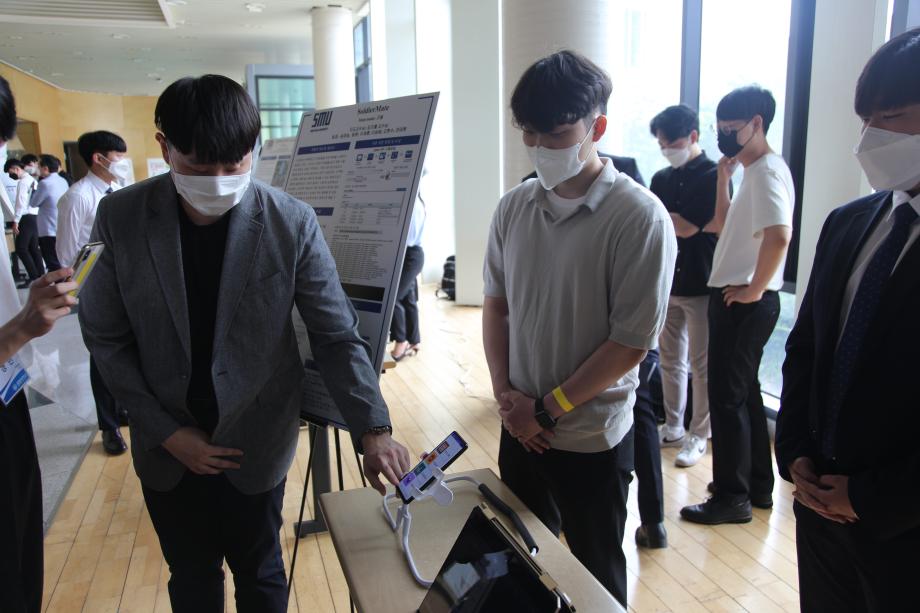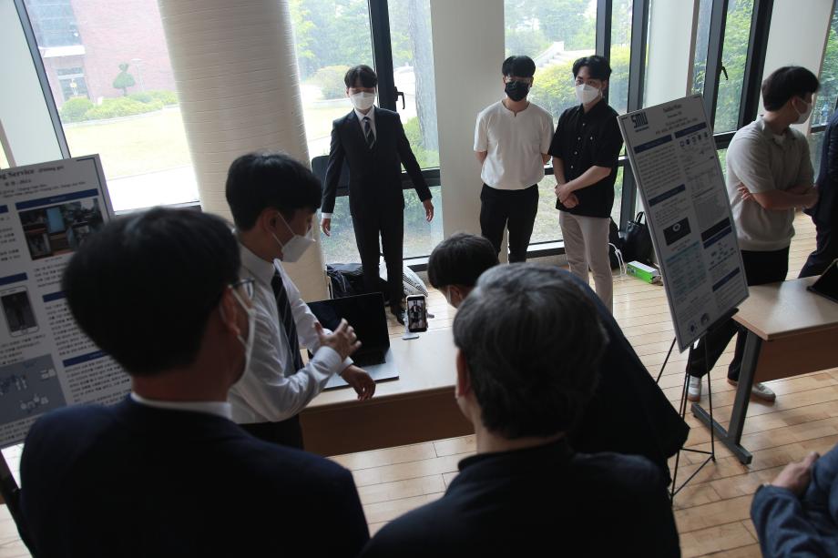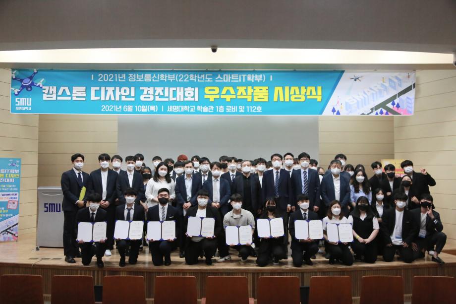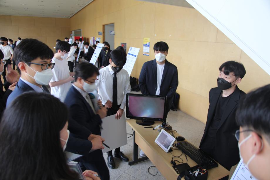 본문 시작 홈으로 SMIT 소식 SMIT 소개 SMIT 교육 SMIT 취업 SMIT 소식 SMIT 입학 홈페이지가이드 갤러리 공지사항 갤러리 경진대회 동아리 갤러리 페이스북 트위터 프린트 2021학년도 스마트IT학부 캡스톤디자인 경진대회 정보통신학부 4606 2021-06-10 2021년 06월 10일 정보통신학부에서는 캡스톤디자인 경진대회를 학술관1층 로비에서 진행하였습니다. 4학년 재학생들이 4년동안 학습한 지식의 미무리 단계로서 1년 동안 준비한 작품을 교수님들께 설명과 함께 시연하고 교수님들의 평가 후 우수작품을 선정하여 학술관112호에서 시상하였다. 캡스톤디자인 결과발표회를 통해서 재학생들은 산업현장에서 진행해야 하는 프로젝트 업무를 간접적으로 느낄 수 있는 뜻 깊은 자리 였습니다. 목록 이전스마트IT학부 홍보팀 “스마트하랑”발대식 다음 2022학년도 스마트IT학부 리플렛 담당부서 : 스마트IT학부 담당자 : - 연락처 : 043-649-1275 최종수정일 : 2024-10-26 만족도조사 만족도 조사 이 페이지에서 제공하는 정보에 대하여 만족하시나요? 매우만족 만족 보통 불만족 매우불만족