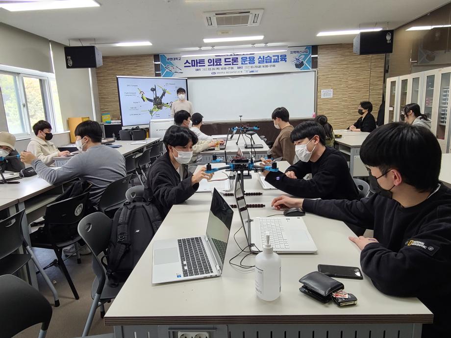본문 시작 홈으로 SMIT 소식 SMIT 소개 SMIT 교육 SMIT 취업 SMIT 소식 SMIT 입학 홈페이지가이드 갤러리 공지사항 갤러리 경진대회 동아리 갤러리 페이스북 트위터 프린트 4차산업 실무역량 강화 스마트 의료 드론 운용 실습교육 진행 스마트IT학부 2659 2022-03-25 스마트IT학부에서는 3월 24일, 25일 14시~17시까지 이틀에 걸쳐 첨단정보학관 407호에서 4차산업 실무역량 강화를 위한 스마트 의료 드론 운용 실습교육을 진행하였다. 학부 재학생 약 20명이 참여하여 의료 드론에 관찬 기초적인 강의를 듣고, 직접 드론을 만들어 코딩으로 드론을 조종하는 방법까지 체험하였다. 목록 이전스마트IT학부_신입생 대환영 드론 경진대회 다음 [스마트IT학부] 지역고교대상 프리칼리지 프로그램 시행 담당부서 : 스마트IT학부 담당자 : - 연락처 : 043-649-1275 최종수정일 : 2024-10-26 만족도조사 만족도 조사 이 페이지에서 제공하는 정보에 대하여 만족하시나요? 매우만족 만족 보통 불만족 매우불만족