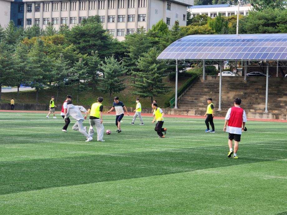 미니 체육대회 종목은 피구, 달리기 계주, 축구였으며 지도교수별로 팀을 이루어 진행했다.