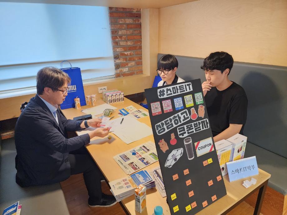 본문 시작 홈으로 SMIT 소식 SMIT 소개 SMIT 교육 SMIT 취업 SMIT 소식 SMIT 입학 홈페이지가이드 갤러리 공지사항 갤러리 경진대회 동아리 갤러리 페이스북 트위터 프린트 세명고등학교 입시박람회 시행 스마트IT학부 5205 2023-07-17 스마트IT학부는 2023.07.13(목) 세명고등학교에서 진행하는 세명고 박람회에 참가하였다. 학생들이 자유롭게 입시상담 부스에 방문하여 스마트IT학부 입시 등에 대하여 조면균 교수님과 상담을 하였다. 상담을 받은 학생에 한하여 상품 경품을 진행하였다. 세명고 학생들에게 입시와 취업 전망 등에 대해 설명하는 유익한 시간이었다. 목록 이전스마트IT학부 제천제일고 내비게이션 특강 시행 다음 한상익 교수님 '산학협력단 감사의 글' 수여 담당부서 : 스마트IT학부 담당자 : - 연락처 : 043-649-1275 최종수정일 : 2024-10-26 만족도조사 만족도 조사 이 페이지에서 제공하는 정보에 대하여 만족하시나요? 매우만족 만족 보통 불만족 매우불만족