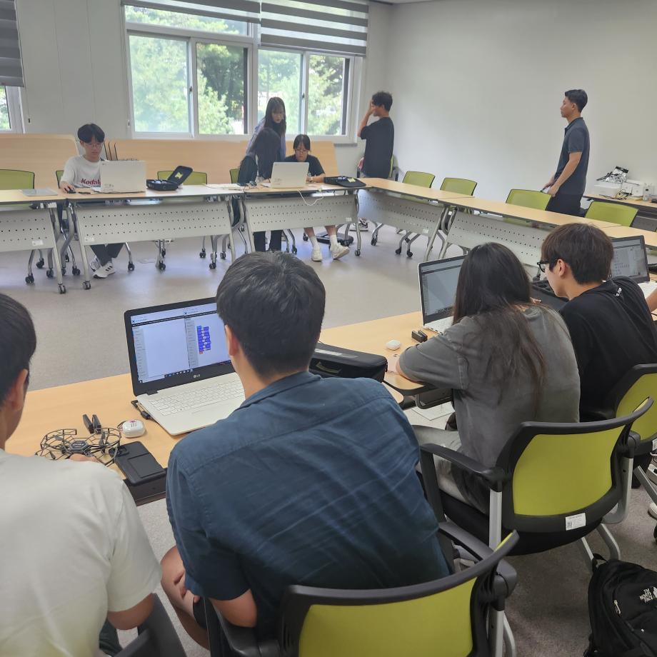 2023년 7월 27일(목)에는 세명고등학교 첫 번째 활동이 시행 되었으며, 오리엔테이션과 인공지능과 드론에 대한 기초적인 이론학습을 한 후 코딩 및 조종을 하는 실습활동을 하였다.