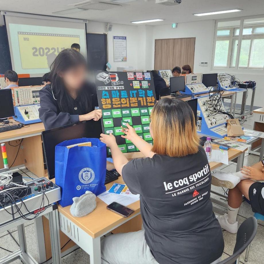 본문 시작 홈으로 SMIT 소식 SMIT 소개 SMIT 교육 SMIT 취업 SMIT 소식 SMIT 입학 홈페이지가이드 갤러리 공지사항 갤러리 경진대회 동아리 갤러리 페이스북 트위터 프린트 스마트IT학부 제천 디지털전자고등학교 입시홍보 스마트IT학부 5746 2023-09-04 2023.08.31.목요일에 세명대학교 스마트IT학부는 입시 홍보 및 드론 조종 체험을 위하여 제천디지털전자고등학교에 방문하였습니다! 세명대와 스마트IT 학부에 대해 소개하고 알리며 퀴즈로 통하여 많은 경품들을 추첨하고 드론 날리기를 진행하는 등 유익한 홍보활동을 다녀왔습니다! 고등학교 학생들의 적극적인 참여와 많은 관심에 감사드립니다 목록 이전2023학년도 자기설계 해외배낭연수 다음 2024학년도 스마트IT학부 수시모집 안내! 담당부서 : 스마트IT학부 담당자 : - 연락처 : 043-649-1275 최종수정일 : 2024-10-26 만족도조사 만족도 조사 이 페이지에서 제공하는 정보에 대하여 만족하시나요? 매우만족 만족 보통 불만족 매우불만족