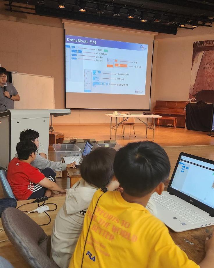 본문 시작 홈으로 SMIT 소식 SMIT 소개 SMIT 교육 SMIT 취업 SMIT 소식 SMIT 입학 홈페이지가이드 갤러리 공지사항 갤러리 경진대회 동아리 갤러리 페이스북 트위터 프린트 스마트IT학부 제천 기적의 도서관 행사 2일차 스마트IT학부 6455 2023-09-18 2023.09.14.목요일 세명대학교 스마트 IT학부는 기적의 도서관에서 초등학생들을 대상으로한 드론 2주차 수업에 다녀왔습니다.❤️ 2추자 수업으로는 1주차에 조종하였던 텔로 드론과 DroneBlocks를 사용하여 코딩 활동을 하였습니다.📚 미션으로 제시된 모양데로 코딩을 하고 학생들이 원하는 방식으로 직접 코딩하여 재미있는 활동을 하였습니다.🫶 학생들의 적극적인 참여에 감사드립니다.👍🫶👍 목록 이전스마트IT학부 제천기적의 도서관 행사 1주차 다음 스마트IT학부 제천 기적의 도서관 행사 3주차 담당부서 : 스마트IT학부 담당자 : - 연락처 : 043-649-1275 최종수정일 : 2024-10-26 만족도조사 만족도 조사 이 페이지에서 제공하는 정보에 대하여 만족하시나요? 매우만족 만족 보통 불만족 매우불만족