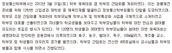 본문 시작 홈으로 SMIT 소식 SMIT 소개 SMIT 교육 SMIT 취업 SMIT 소식 SMIT 입학 홈페이지가이드 갤러리 공지사항 갤러리 경진대회 동아리 갤러리 페이스북 트위터 프린트 [ACE사업]책임지도 교수별 용두산 등반 및 자연정화 사업 시행 오선진 7203 2012-05-14 [ACE사업]책임지도 교수별 용두산 등반 및 자연정화 사업 시행 목록 이전2012년도 정보통신학부 체육대회 및 학부모 간담회 개최 다음 [ACE 취업역량강화사업] 졸업 선배 초청 취업특강 개최 담당부서 : 스마트IT학부 담당자 : - 연락처 : 043-649-1275 최종수정일 : 2024-10-26 만족도조사 만족도 조사 이 페이지에서 제공하는 정보에 대하여 만족하시나요? 매우만족 만족 보통 불만족 매우불만족