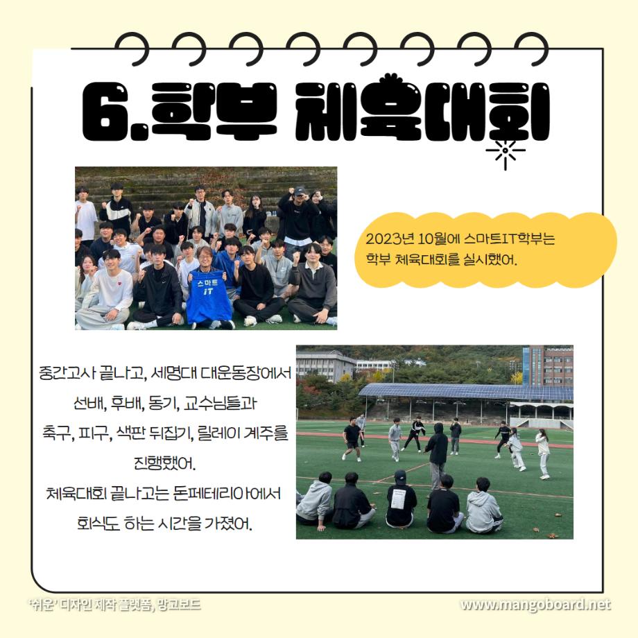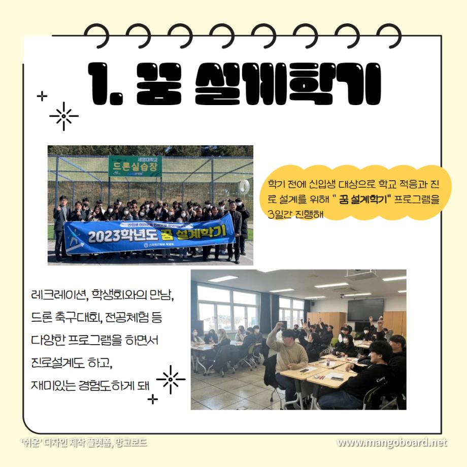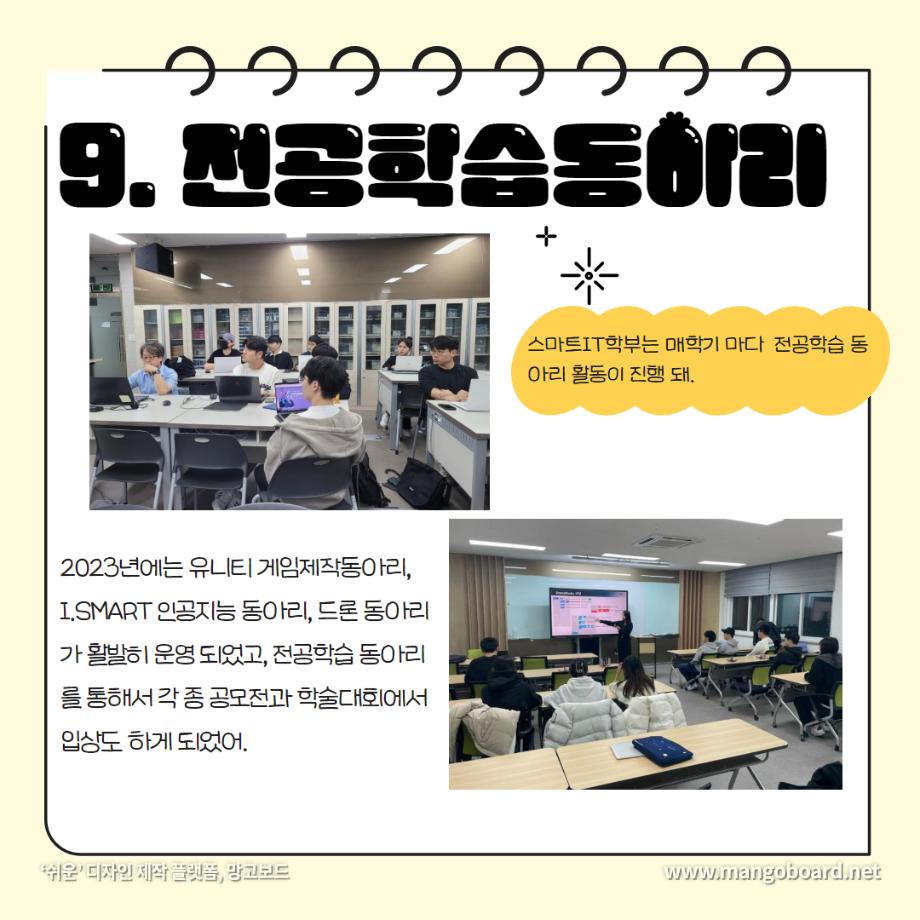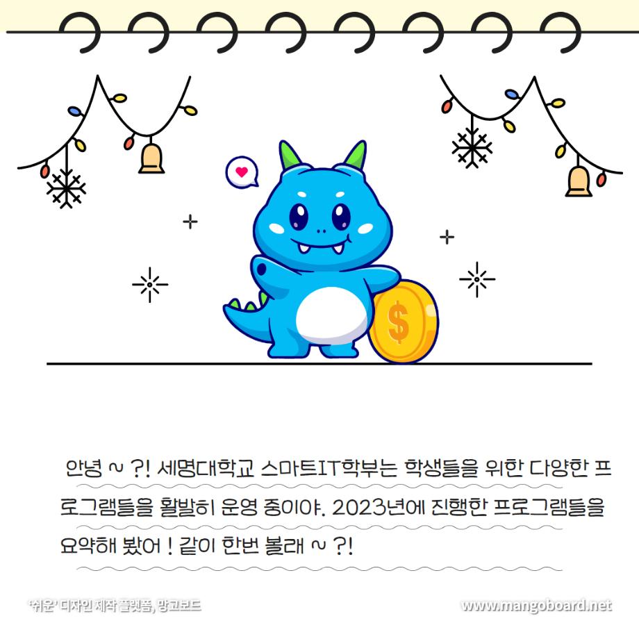 본문 시작 홈으로 SMIT 소식 SMIT 소개 SMIT 교육 SMIT 취업 SMIT 소식 SMIT 입학 홈페이지가이드 갤러리 공지사항 갤러리 경진대회 동아리 갤러리 페이스북 트위터 프린트 세명대학교 스마트IT학부는 이런 활동을 한다 ❗ 스마트IT학부 2701 2024-01-04 세명대학교 스마트IT학부는 이런 활동을 한다 ❗ 안녕하세요. 세명대학교 스마트IT학부입니다. 😍 2023년도에 진행한 스마트IT학부의 유익하고 즐거웠던 프로그램들 함께 보실까요 ?!😊 세명대 스마트IT학부는 재학생들을 위한 다양하고 재미있는 프로그램들이 활발히 운영하고 있습니다. ❤️ 목록 이전2023-2학기 드론 동아리 시행🎈 다음 실무경험 ? 자격증? 취업 All in 세명대학교 스마트IT학부 담당부서 : 스마트IT학부 담당자 : - 연락처 : 043-649-1275 최종수정일 : 2024-10-26 만족도조사 만족도 조사 이 페이지에서 제공하는 정보에 대하여 만족하시나요? 매우만족 만족 보통 불만족 매우불만족