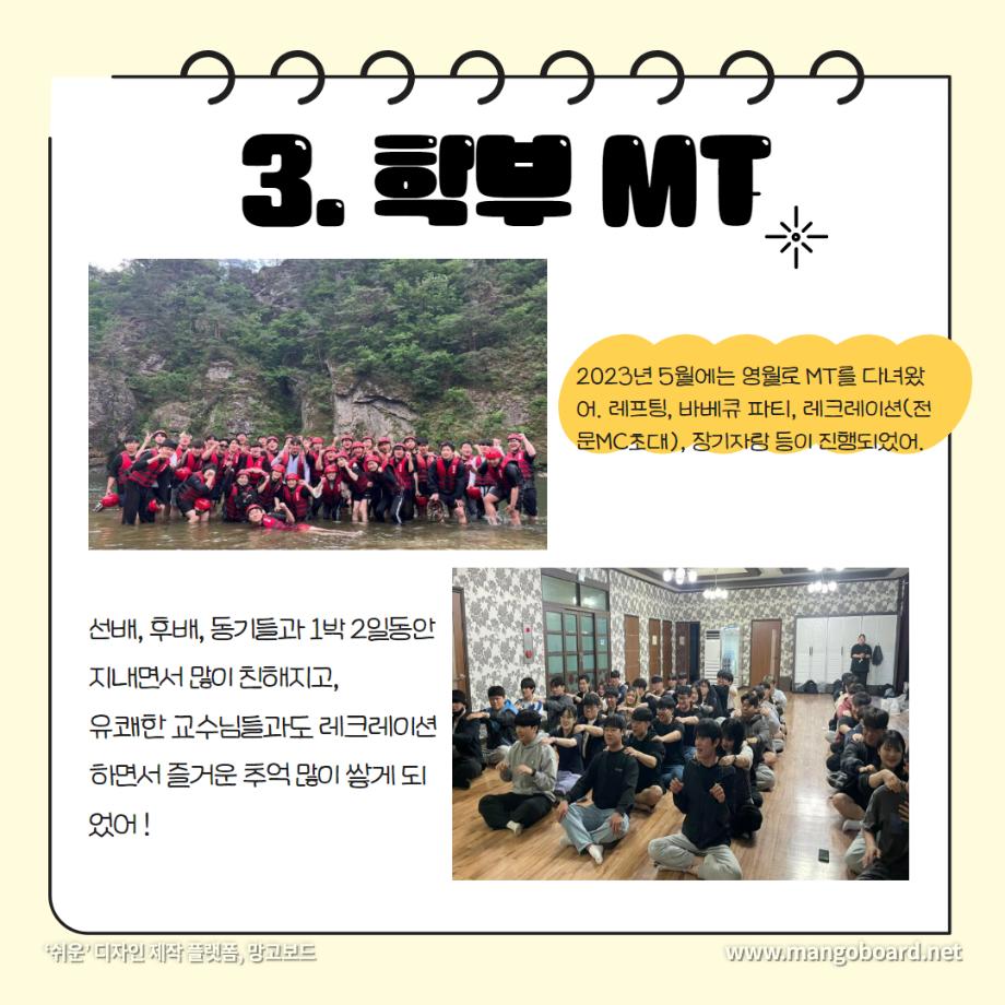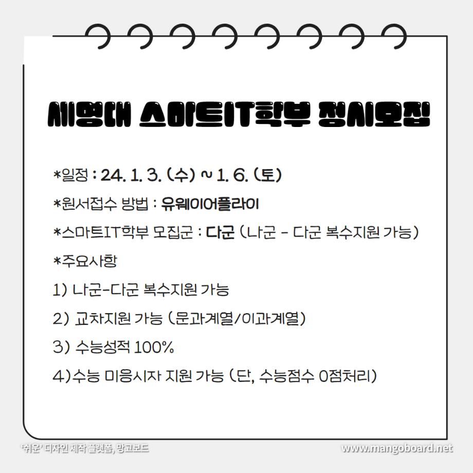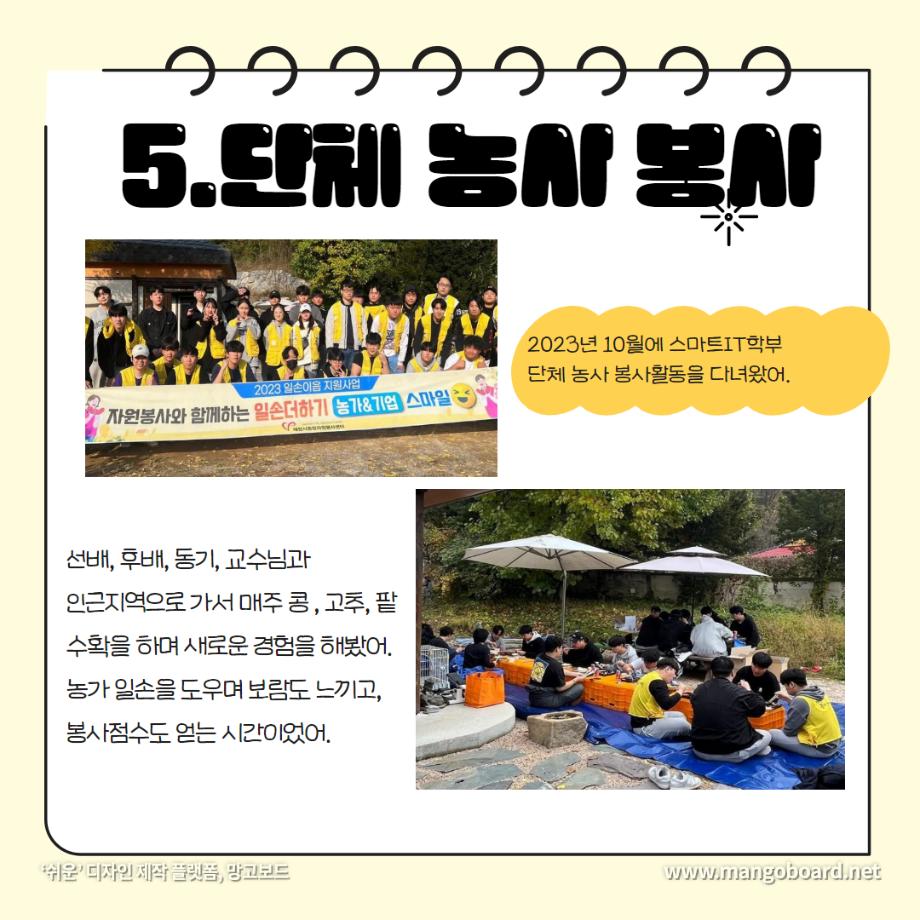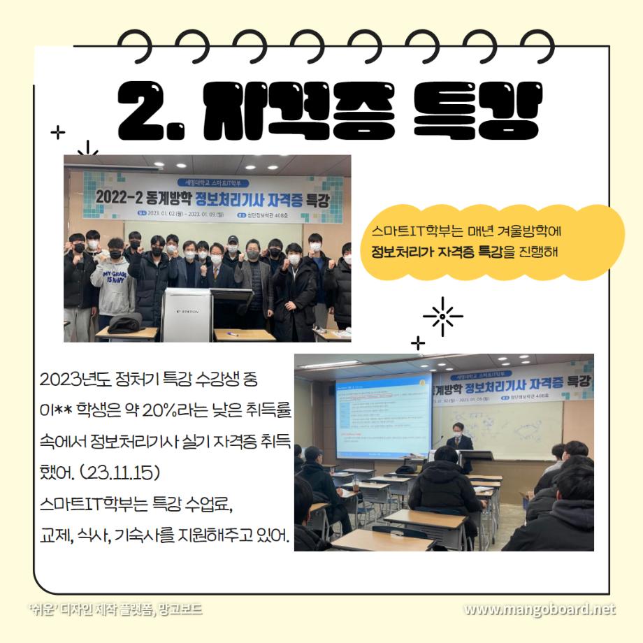 본문 시작 홈으로 SMIT 소식 SMIT 소개 SMIT 교육 SMIT 취업 SMIT 소식 SMIT 입학 홈페이지가이드 갤러리 공지사항 갤러리 경진대회 동아리 갤러리 페이스북 트위터 프린트 세명대학교 스마트IT학부는 이런 활동을 한다 ❗ 스마트IT학부 2701 2024-01-04 세명대학교 스마트IT학부는 이런 활동을 한다 ❗ 안녕하세요. 세명대학교 스마트IT학부입니다. 😍 2023년도에 진행한 스마트IT학부의 유익하고 즐거웠던 프로그램들 함께 보실까요 ?!😊 세명대 스마트IT학부는 재학생들을 위한 다양하고 재미있는 프로그램들이 활발히 운영하고 있습니다. ❤️ 목록 이전2023-2학기 드론 동아리 시행🎈 다음 실무경험 ? 자격증? 취업 All in 세명대학교 스마트IT학부 담당부서 : 스마트IT학부 담당자 : - 연락처 : 043-649-1275 최종수정일 : 2024-10-26 만족도조사 만족도 조사 이 페이지에서 제공하는 정보에 대하여 만족하시나요? 매우만족 만족 보통 불만족 매우불만족