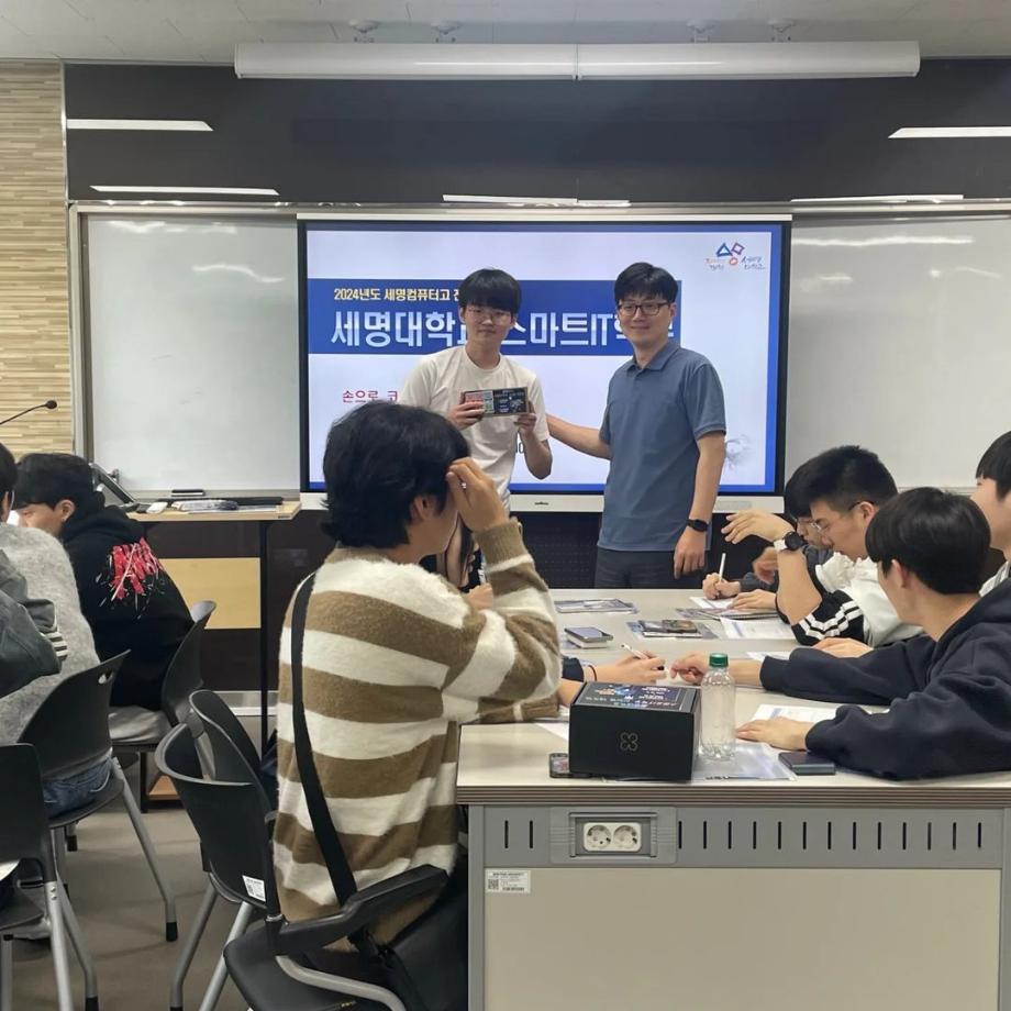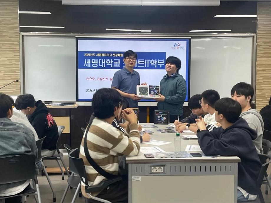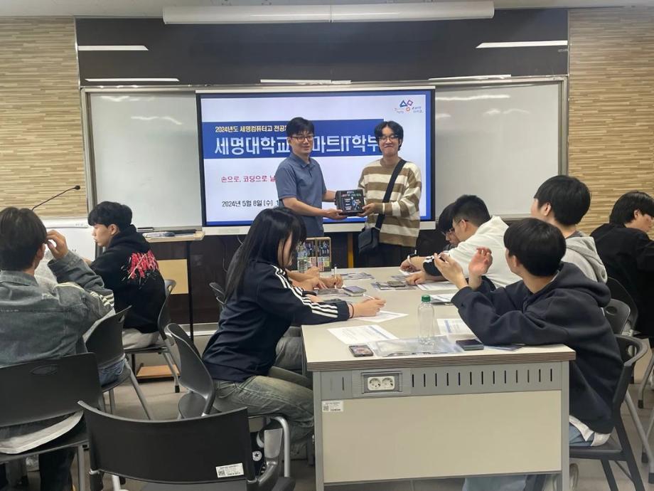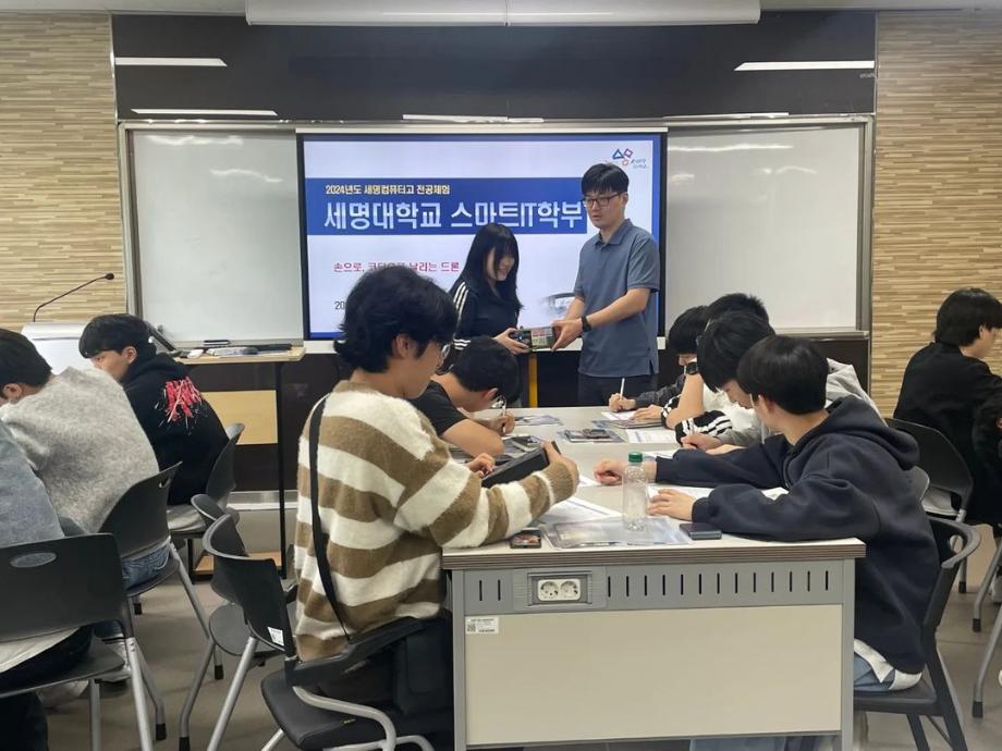 본문 시작 홈으로 SMIT 소식 SMIT 소개 SMIT 교육 SMIT 취업 SMIT 소식 SMIT 입학 홈페이지가이드 갤러리 공지사항 갤러리 경진대회 동아리 갤러리 페이스북 트위터 프린트 세명컴퓨터고등학교 전공 특강 시행 스마트IT학부 2875 2024-05-09 안녕하세요 세명대학교 스마트IT학부입니다🤗 2024년 5월 8일에 세명컴퓨터고등학교 학생들의 전공 체험 활동을 진행하였습니다. 세명대학교의 자매학교인 세명컴퓨터고등학교의 전공 체험 학습을 위해 스마트IT학부는 드론 축구와 드론 레이스를 진행했습니다. 게임의 우승자와 열심히 참여한 학생들에게 드론과 소정의 상품을 증정하였습니다. 목록 이전2024학년도 스마트IT학부 MT 다음 2024 청룡체전 담당부서 : 스마트IT학부 담당자 : - 연락처 : 043-649-1275 최종수정일 : 2024-10-26 만족도조사 만족도 조사 이 페이지에서 제공하는 정보에 대하여 만족하시나요? 매우만족 만족 보통 불만족 매우불만족