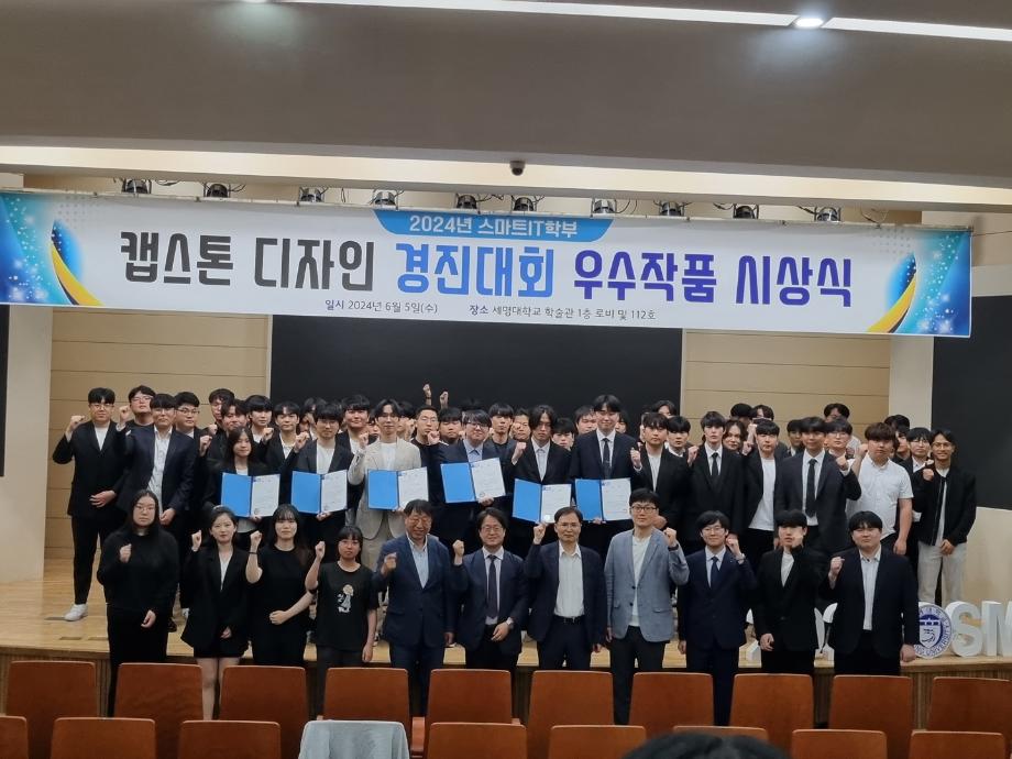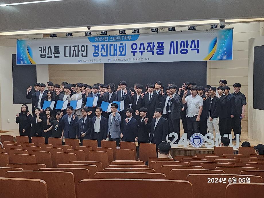 본문 시작 홈으로 SMIT 소식 SMIT 소개 SMIT 교육 SMIT 취업 SMIT 소식 SMIT 입학 홈페이지가이드 갤러리 공지사항 갤러리 경진대회 동아리 갤러리 페이스북 트위터 프린트 2024학년도 졸업작품 전시회 개최 스마트IT학부 2840 2024-06-07 안녕하세요 세명대학교 스마트IT학부입니다🙂 2024년 6월 5일에 스마트IT학부 캡스톤 디자인 경진대회를 진행하였습니다! 이번 발표회와 시상식이 더 넓은 세계로 나아가기 위한 발딛음이 되었으면 하는 바람으로 4학년 분들, 긴 시간동안 정말 고생 많으셨습니다😊 캡스톤 디자인 경진대회 진행을 도와주신 교수님들께도 감사인사 전합니다. #제천 #세명대 #세명대학교 #IT #캡스톤 #디자인 #발표회 #시상식 #졸업작품 목록 이전제천제일고 전공체험활동!! 다음 세명대학교 꿈 실현 장학금 신청 안내 담당부서 : 스마트IT학부 담당자 : - 연락처 : 043-649-1275 최종수정일 : 2024-10-26 만족도조사 만족도 조사 이 페이지에서 제공하는 정보에 대하여 만족하시나요? 매우만족 만족 보통 불만족 매우불만족