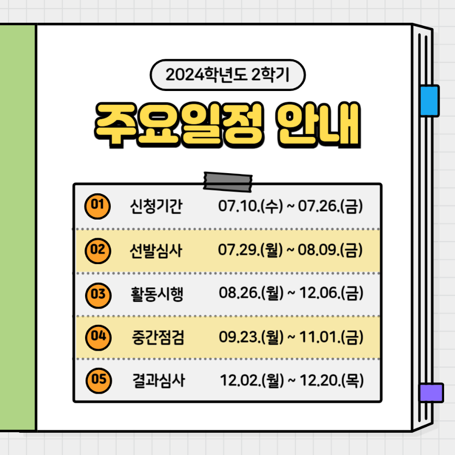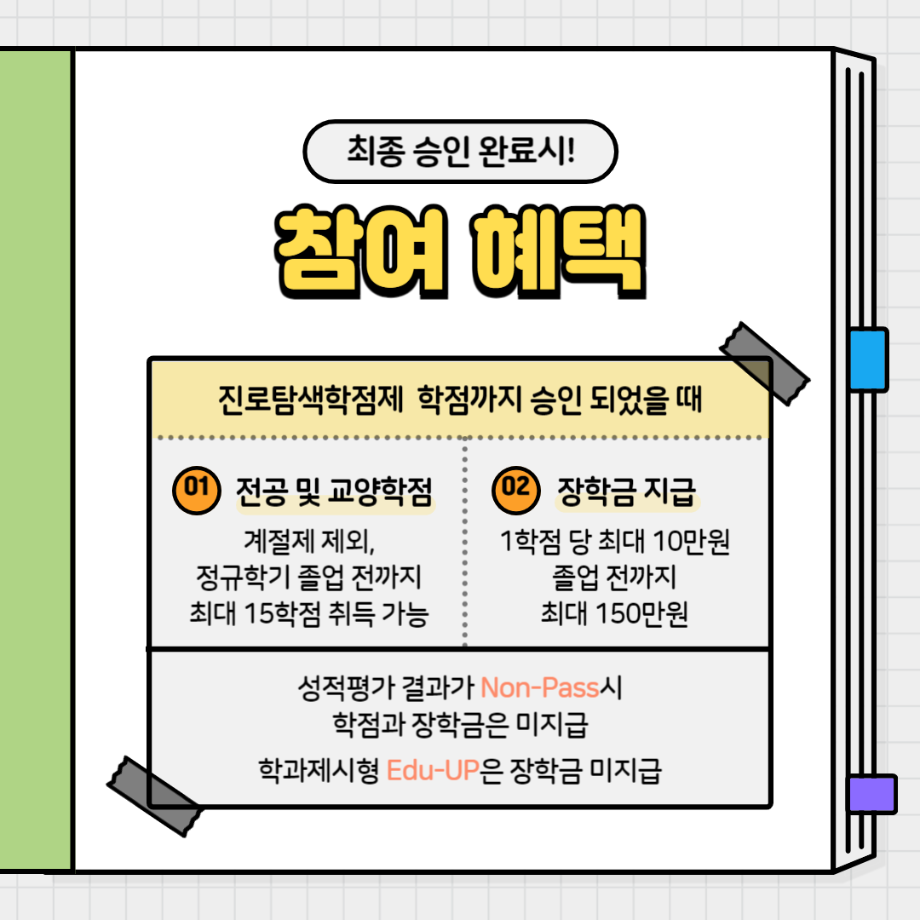 본문 시작 홈으로 SMIT 소식 SMIT 소개 SMIT 교육 SMIT 취업 SMIT 소식 SMIT 입학 홈페이지가이드 갤러리 공지사항 갤러리 경진대회 동아리 갤러리 페이스북 트위터 프린트 2024-2학기 진로탐색학점 스마트IT학부 2449 2024-07-17 2024학년도 2학기 진로탐색 학점제 목록 이전제천고등학교 전공체험활동❗❗ 다음 ★2024학년도 2학기 팝업스토어 신청자 모집★ 담당부서 : 스마트IT학부 담당자 : - 연락처 : 043-649-1275 최종수정일 : 2024-10-26 만족도조사 만족도 조사 이 페이지에서 제공하는 정보에 대하여 만족하시나요? 매우만족 만족 보통 불만족 매우불만족