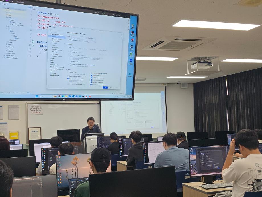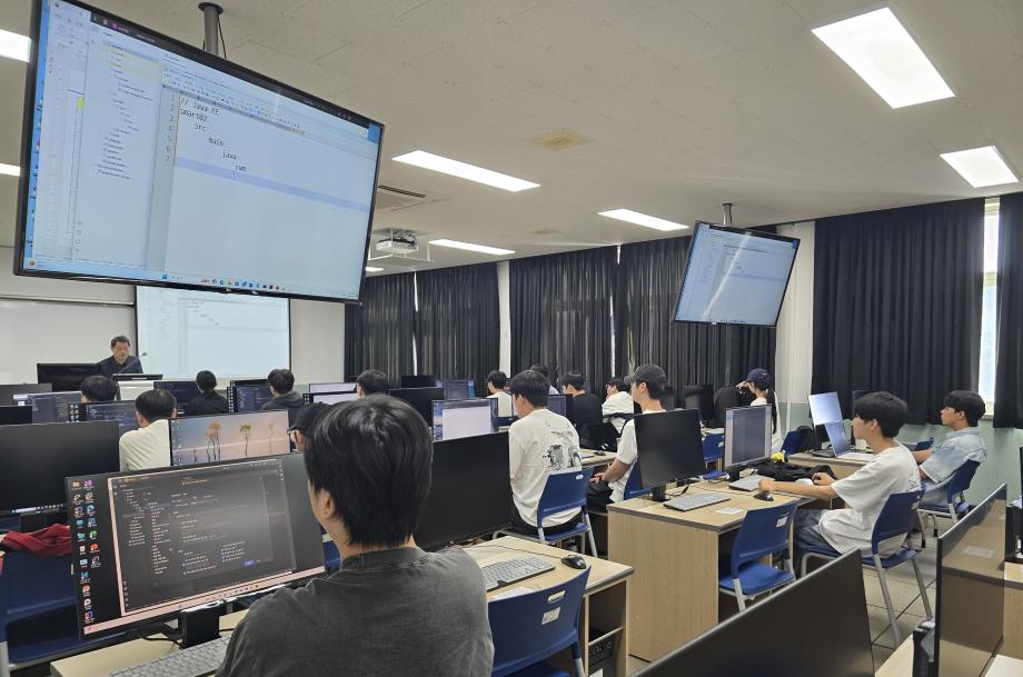 본문 시작 홈으로 SMIT 소식 SMIT 소개 SMIT 교육 SMIT 취업 SMIT 소식 SMIT 입학 홈페이지가이드 갤러리 공지사항 갤러리 경진대회 동아리 갤러리 페이스북 트위터 프린트 스마트IT학부 JAVA언어실습 전공 실습수업 스마트IT학부 1633 2025-09-11 스마트IT학부 JAVA언어실습 전공 실습수업 사진입니다. 모두들 적극적으로 그리고 즐겁게 수업에 참여하고 있습니다. 목록 이전스마트IT학부자료구조알고리즘 전공 수업 다음 2025 청룡체전 담당부서 : 스마트IT학부 담당자 : - 연락처 : 043-649-1275 최종수정일 : 2024-10-26 만족도조사 만족도 조사 이 페이지에서 제공하는 정보에 대하여 만족하시나요? 매우만족 만족 보통 불만족 매우불만족