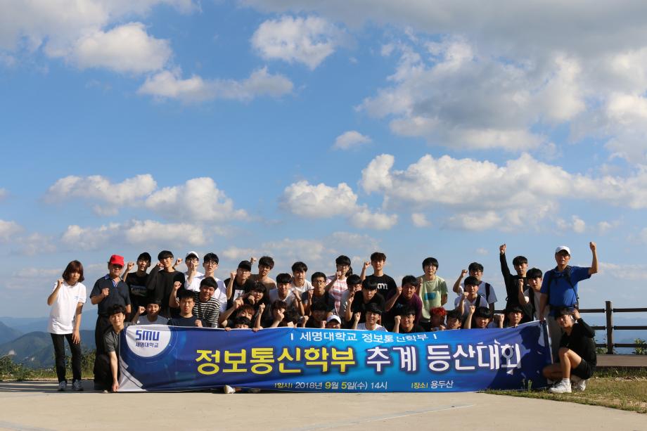 본문 시작 홈으로 SMIT 소식 SMIT 소개 SMIT 교육 SMIT 취업 SMIT 소식 SMIT 입학 홈페이지가이드 갤러리 공지사항 갤러리 경진대회 동아리 갤러리 페이스북 트위터 프린트 2018학년도 정보통신학부 용두산 등산 정보통신학부 7401 2018-09-27 정보통신학부에서는 2018년 09월 05일 18학번 신입생들을 대상으로 용두산 등산을 실시하였다. 이날 참가한 신입생들은 즐거운 마음으로 산행하면서 용두산의 아름다움을 체험할 수 있었다. 이번 용두산 등산을 계기로 신입생들의 유대감이 더욱 더 향상 되었고 몸과 마음을 단련할 수 있는 좋은 계기가 되었다. 목록 이전2017학년도 후기 학위수여식 개최 다음 2018학년도 IT엔지니어링대학 임직원 취업특강 담당부서 : 스마트IT학부 담당자 : - 연락처 : 043-649-1275 최종수정일 : 2024-10-26 만족도조사 만족도 조사 이 페이지에서 제공하는 정보에 대하여 만족하시나요? 매우만족 만족 보통 불만족 매우불만족