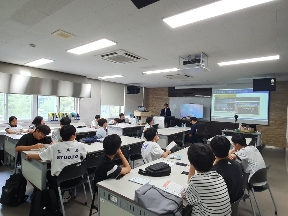 본문 시작 홈으로 SMIT 소식 SMIT 소개 SMIT 교육 SMIT 취업 SMIT 소식 SMIT 입학 홈페이지가이드 갤러리 공지사항 갤러리 경진대회 동아리 갤러리 페이스북 트위터 프린트 2019학년도 진로-진학 박람회 정보통신학부 6844 2019-07-19 지난 07월 12일 금요일에 정보통신학부에서는 세명대학교 제4회 진로-진학 박람회에 참가하였다. ‘정보통신학부 2019 캡스톤디자인 우수작 시연 및 감상’이라는 주제로 학부 교수님의 정보통신학부 소개 및 4학년 재학생들의 발표로 진행되었다. 참여 학생들은 약 40여명으로 제천고, 세명고, 제천여고 학생들이 참석하였다. 목록 이전2019학년도 하계방학 중 국제네트워크(CCNA) 전공자격증 특강 진행 다음 2018학년도 후기 학위수여식 개최 담당부서 : 스마트IT학부 담당자 : - 연락처 : 043-649-1275 최종수정일 : 2024-10-26 만족도조사 만족도 조사 이 페이지에서 제공하는 정보에 대하여 만족하시나요? 매우만족 만족 보통 불만족 매우불만족