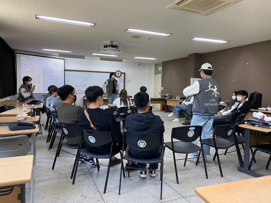 본문 시작 홈으로 커뮤니티 학과소개 교수소개 학과과정 커뮤니티 학과게시판 홈페이지가이드 포토갤러리 포토갤러리 전공자료실 학생회 동아리 포토갤러리 페이스북 트위터 프린트 2022학년도 신입생 성년의 날 토목공학과 3906 2022-05-18 지난 5월 16일, 토목공학과 재학생들은 2022학년도 신입생 학생들을 위해 성년의 날 행사를 진행하였습니다. 신입생 학생들을 위해 꽃다발과 선물을 준비하였고 학과 교수님들이 참여하셔서 함께 축하해주셨습니다. 신입생들의 소속감을 위해 과잠을 배부하였고 앞으로의 학교생활에 필요한 조언과 게임 진행을 통해 좀 더 친밀한 관계가 형성되었습니다. 행사 후에는 함께 점심식사를 하며 신입생들의 미래를 응원하는 자리가 되었습니다. 목록 이전학문간 융합을 위한 it엔지니어링대학 학술세미나 다음 2022학년도 스승의 날 담당부서 : 건설환경공학과 담당자 : - 연락처 : 043-649-1778 최종수정일 : 2024-10-26 만족도조사 만족도 조사 이 페이지에서 제공하는 정보에 대하여 만족하시나요? 매우만족 만족 보통 불만족 매우불만족