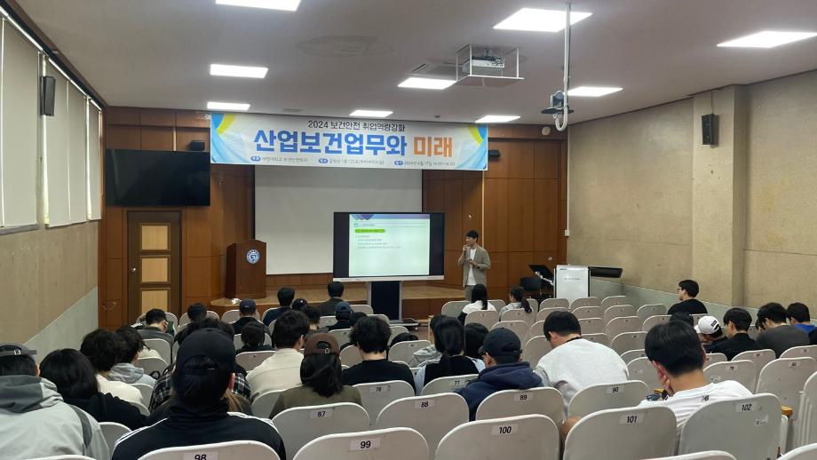 본문 시작 홈으로 커뮤니티 학과소개 진로 및 취업 교수소개 학과과정 커뮤니티 홈페이지가이드 포토갤러리 학과공지 학사일정 포토갤러리 학생회 학과영상 보건안전학과 인스타 보건안전학과 블로그 포토갤러리 페이스북 트위터 프린트 2024학년도 보건안전학과 동문특강 보건안전학과 3239 2024-04-22 2024-04-17(수) 14 : 00 ~ 16 :00 공학관 하이브리드실에서 동문특강으로 대한산업보건협회 서울본부에 강운준차장('01학번 동문)이 "산업보건업무와 미래"라는 주제로 강의를 진행하였습니다. 현재 대한산업보건협회 본부와 지부에 15명의 동문이 취업하여 근로자의 건강과 쾌적한 작업환경을 조성하고있습니다. 목록 이전2024 보건안전학과 MT 다음 2024학년도 청룡체전 (5.08~5.10) 담당부서 : 보건안전학과 담당자 : - 연락처 : 043-649-1777 최종수정일 : 2024-10-26 만족도조사 만족도 조사 이 페이지에서 제공하는 정보에 대하여 만족하시나요? 매우만족 만족 보통 불만족 매우불만족