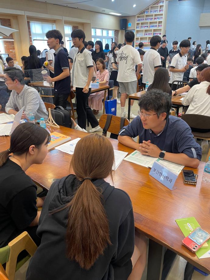 많은 세명고 학생들이 부스에 찾아와서 많은 정보를 얻어갔습니다. 세명고 학생들에게 보건안전학과 입시와 취업 전망 등에 대해 설명하는 유익한 시간이었습니다.