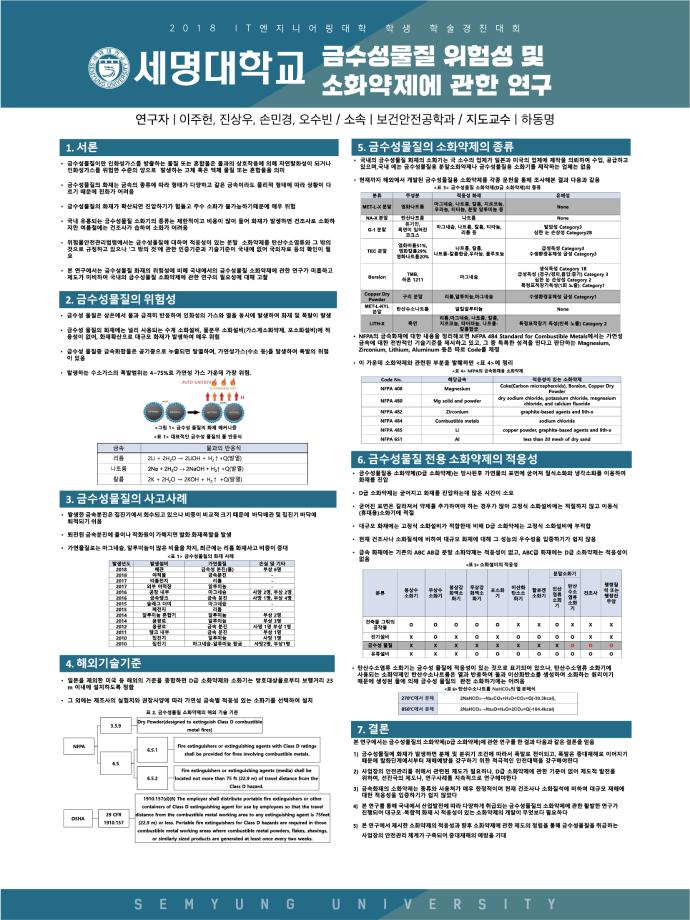 본문 시작 홈으로 커뮤니티 학과소개 진로 및 취업 교수소개 학과과정 커뮤니티 홈페이지가이드 포토갤러리 학과공지 학사일정 포토갤러리 학생회 학과영상 보건안전학과 인스타 보건안전학과 블로그 포토갤러리 페이스북 트위터 프린트 IT엔지니어링대학 학술발표대회 수상작 보건안전공학과 8057 2018-11-20 2018년 11월 1일 IT엔지니어링대학 학술발표대회 수상작 - 금 상 : Ethanol의 화재 · 폭발특성치의 측정 및 예측 양유환, 이원희, 김민정 - 장려상 : 금수성물질의 위험성과 소화약제에 관한 연구 이주헌,진상우,손민경,오수빈 -장려상 : 위험성 평가 이동한, 이진규, 윤병선, 김윤희 목록 이전제1회 IT엔지니어링대학 학술발표대회 다음 제 25회 세명대학교 보건안전공학과 학위수여식 담당부서 : 보건안전학과 담당자 : - 연락처 : 043-649-1777 최종수정일 : 2024-10-26 만족도조사 만족도 조사 이 페이지에서 제공하는 정보에 대하여 만족하시나요? 매우만족 만족 보통 불만족 매우불만족