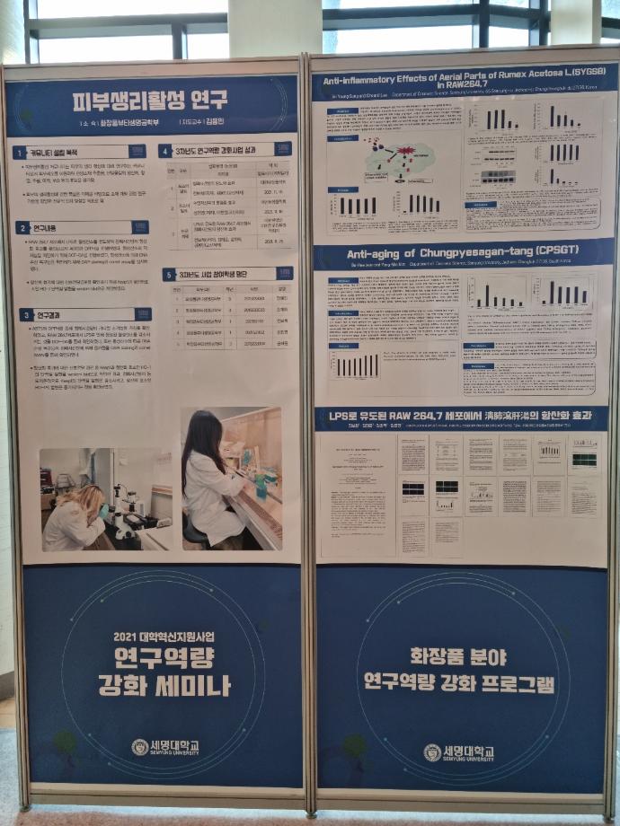 본문 시작 홈으로 커뮤니티 학과소개 학과과정 대학원 커뮤니티 연구동아리 홈페이지가이드 포토갤러리 학과공지 채용정보 학과일정 포토갤러리 유튜브 인스타그램 취업현황 학생회 조직도 졸업생 숏터뷰 포토갤러리 페이스북 트위터 프린트 2021 대학혁신지원사업 연구역량 강화 프로그램 포스터 게시 화장품뷰티학부 3524 2021-12-02 학술관 1층 로비에 화장품분야 관련 연구역량강화 포스터가 게재되었습니다 :) 학부 관련 동아리에 관한 내용도 게재 되어있으니 자유롭게 방문하셔서 구경하고 가세요~ 목록 이전2021학년도 대학혁신지원사업 연구역량 강화 세미나 다음 2021학년도 캡스톤디자인 경진대회 입상_단오 팀 담당부서 : 바이오코스메틱학과 담당자 : - 연락처 : 043-649-1638 최종수정일 : 2024-10-26 만족도조사 만족도 조사 이 페이지에서 제공하는 정보에 대하여 만족하시나요? 매우만족 만족 보통 불만족 매우불만족