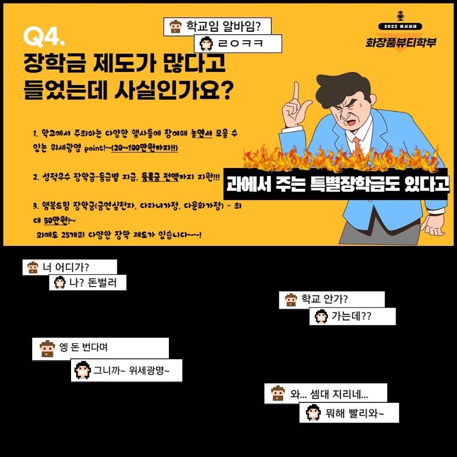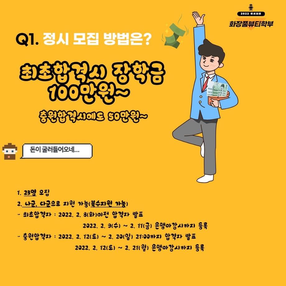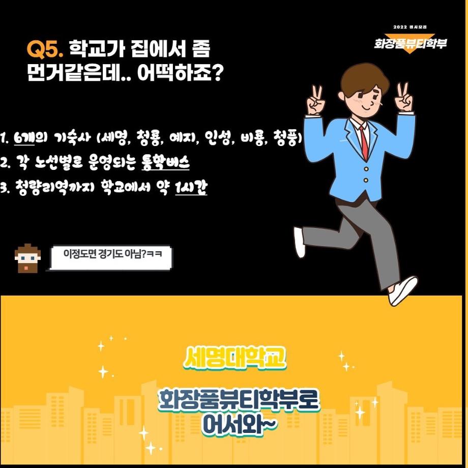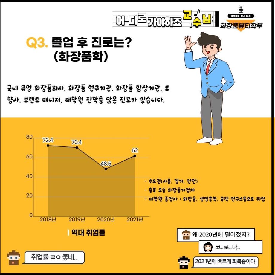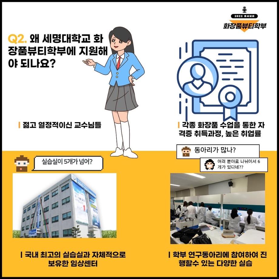 본문 시작 홈으로 커뮤니티 학과소개 학과과정 대학원 커뮤니티 연구동아리 홈페이지가이드 포토갤러리 학과공지 채용정보 학과일정 포토갤러리 유튜브 인스타그램 취업현황 학생회 조직도 졸업생 숏터뷰 포토갤러리 페이스북 트위터 프린트 세명대학교 화장품뷰티학부 2022학년도 정시모집 안내 화장품뷰티학부 3289 2022-01-13 그곳이 알고싶다! 세명대학교 화장품뷰티학부를 소개합니다~ 목록 이전2021학년도 캡스톤디자인 경진대회 입상_단오 팀 다음 2021학년도 화장품뷰티학부 공유대학 혁신인재장학금 장학생 명단 담당부서 : 바이오코스메틱학과 담당자 : - 연락처 : 043-649-1638 최종수정일 : 2024-10-26 만족도조사 만족도 조사 이 페이지에서 제공하는 정보에 대하여 만족하시나요? 매우만족 만족 보통 불만족 매우불만족