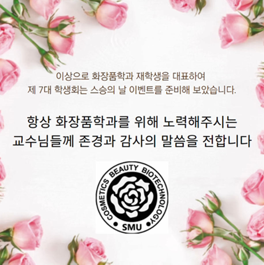 본문 시작 홈으로 커뮤니티 학과소개 학과과정 대학원 커뮤니티 연구동아리 홈페이지가이드 포토갤러리 학과공지 채용정보 학과일정 포토갤러리 유튜브 인스타그램 취업현황 학생회 조직도 졸업생 숏터뷰 포토갤러리 페이스북 트위터 프린트 스승의 날 감사 이벤트 화장품뷰티학부 2598 2022-05-12 화장품학과 7대 학생회가 재학생을 대표하여 스승의 날 이벤트를 준비했습니다. 목록 다음 2022 세명고등학교 과학실험 연구 프로그램 다음 2022-1학기 화장품뷰티학부 캡스톤디자인 발표회 담당부서 : 바이오코스메틱학과 담당자 : - 연락처 : 043-649-1638 최종수정일 : 2024-10-26 만족도조사 만족도 조사 이 페이지에서 제공하는 정보에 대하여 만족하시나요? 매우만족 만족 보통 불만족 매우불만족