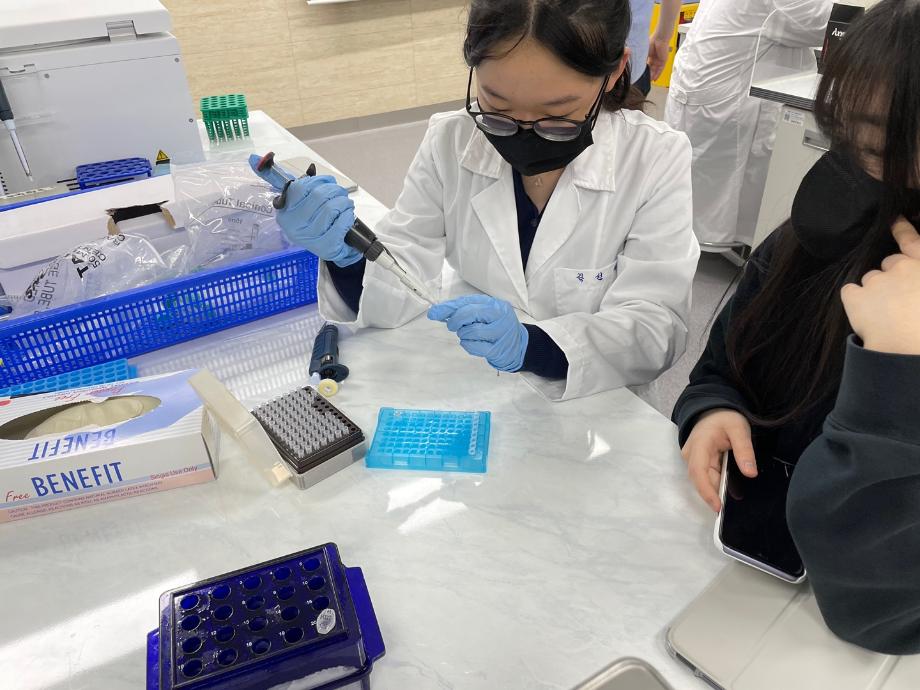 본문 시작 홈으로 커뮤니티 학과소개 학과과정 대학원 커뮤니티 연구동아리 홈페이지가이드 포토갤러리 학과공지 채용정보 학과일정 포토갤러리 유튜브 인스타그램 취업현황 학생회 조직도 졸업생 숏터뷰 포토갤러리 페이스북 트위터 프린트 2022 세명고등학교 과학실험 연구 프로그램(2차) 화장품뷰티학부 2928 2022-06-07 세명대학교 화장품학과(황형서 교수) 주관 2022 세명고등학교 과학 실험 특별프로그램 2차 활동이 5.27(금) 화장품학과 306호 실험실에서 있었습니다. 이날 세명고 학생들은 Central Dogma의 원리를 이해하고, Realtime RT-PCR 실험을 수행하였습니다. 세명고 학생들은 미래 생명공학 및 화장품과학자의 꿈을 미리 경험할 수 있는 뜻 깊은 시간이 되었습니다:) 목록 이전2022-1학기 화장품뷰티학부 캡스톤디자인 발표회 다음 화장품뷰티학부 화장품학 전공 주요 취업 현황 담당부서 : 바이오코스메틱학과 담당자 : - 연락처 : 043-649-1638 최종수정일 : 2024-10-26 만족도조사 만족도 조사 이 페이지에서 제공하는 정보에 대하여 만족하시나요? 매우만족 만족 보통 불만족 매우불만족