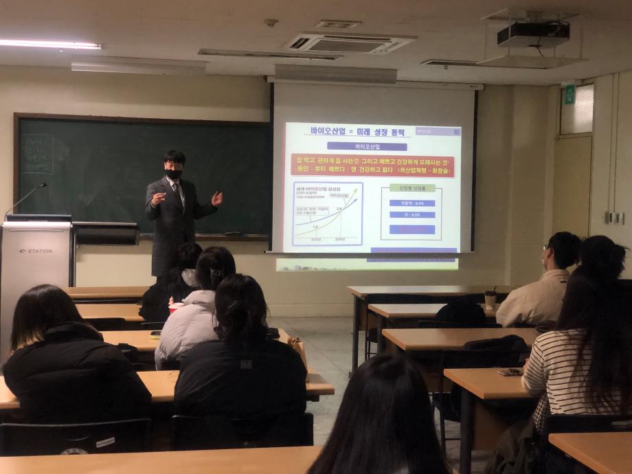 본문 시작 홈으로 커뮤니티 학과소개 학과과정 대학원 커뮤니티 연구동아리 홈페이지가이드 포토갤러리 학과공지 채용정보 학과일정 포토갤러리 유튜브 인스타그램 취업현황 학생회 조직도 졸업생 숏터뷰 포토갤러리 페이스북 트위터 프린트 [화장품산업실무체험] 김수진박사 학술특강 화장품뷰티학부 3653 2022-12-12 안녕하세요 화장품학과입니다! 우리학과 [화장품산업실무체험] 강의에서 학술특강을 진행하였는데요 :) '인트론바이오'에서 근무중이신 김수진 박사님께서 진행해 주셨습니다 ~ 바이오 시장에 대해 전반적으로 이해하는 시간을 가지고, 시장지향적인 마케팅적 사고로 전환하여 화장품분야를 다양한 관점에서 이해하는 시간을 가졌습니다 학생들에게 창의적으로 사고할수 있는 방법에 대해 강의해 주신 김수진 박사님께 감사의 말씀 전합니다 :) 목록 이전화장품학과 : 2022 캡스톤디자인 수상하다! 다음 2022년도 2학기 기말고사 시행 담당부서 : 바이오코스메틱학과 담당자 : - 연락처 : 043-649-1638 최종수정일 : 2024-10-26 만족도조사 만족도 조사 이 페이지에서 제공하는 정보에 대하여 만족하시나요? 매우만족 만족 보통 불만족 매우불만족