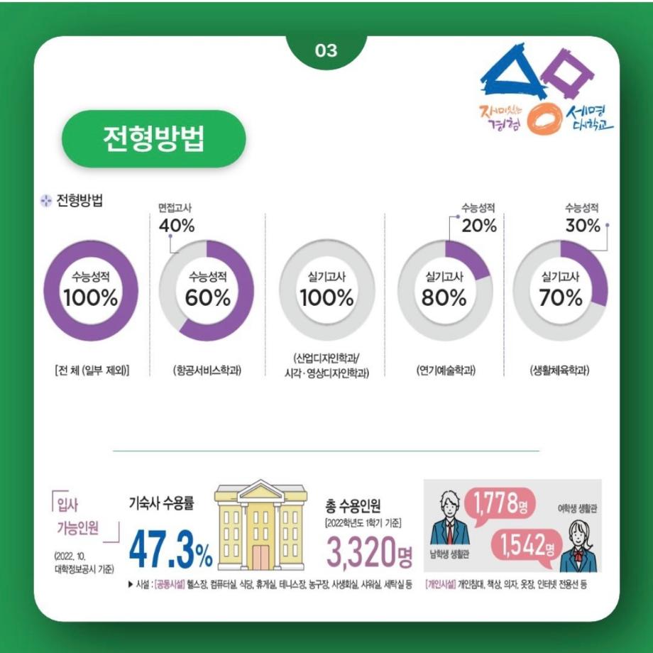 입시생을 위한 링크서비스 입학안내 수시모집 정시모집 편입학 Q&A 학과안내 성적자동산출 입시자료신청 대학소개 장학제도 >학생생활관(기숙사) >찾아오시는길 캠퍼스투어 >국제교류 >학군단(ROTC) >통학버스 입시생 레이어 닫기