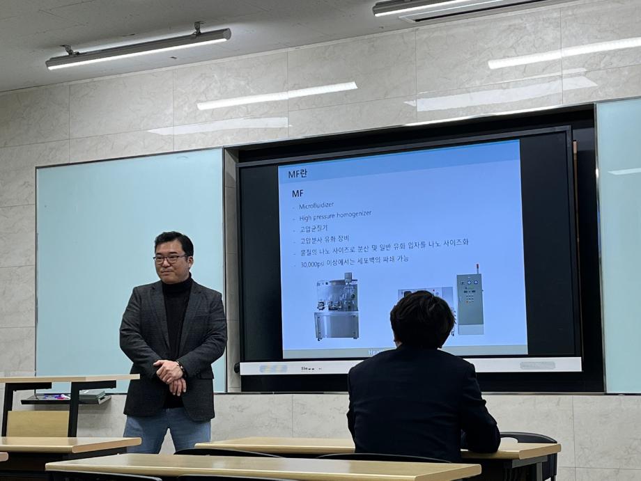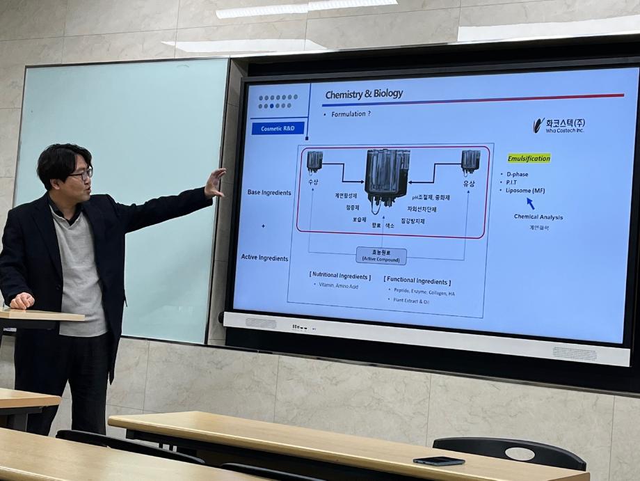 본문 시작 홈으로 커뮤니티 학과소개 학과과정 대학원 커뮤니티 연구동아리 홈페이지가이드 포토갤러리 학과공지 채용정보 학과일정 포토갤러리 유튜브 인스타그램 취업현황 학생회 조직도 졸업생 숏터뷰 포토갤러리 페이스북 트위터 프린트 화장품 제형화 기술지도 및 세미나 진행 화장품뷰티학부 3756 2023-03-13 안녕하세요 화장품학과입니다! 지난 10일(2023.03.10.)에 화장품 공유대학 연구세미나를 통해 화장품 전공 학생들에게 화장품 제형화 기술지도 및 세미나 행사를 진행하였습니다~ 이번 세미나에서는 (주)화코스텍 김성수 연구소장 "리포좀 등 에멀젼 유화 기술"에 대해서 설명해 주셨고, (주)에이치앤비 천종우 대표님께서 "마이크로 플루다이져 유화 기술"에 대해 세미나를 개최해 주셨습니다 :) 목록 이전2023 K-한방 정밀의료 국제포럼 안내 다음 충북바이오헬스산업혁신센터 혁신과 공유 성과발표회 캡스톤디자인경진대회 최우수상 수상 담당부서 : 바이오코스메틱학과 담당자 : - 연락처 : 043-649-1638 최종수정일 : 2024-10-26 만족도조사 만족도 조사 이 페이지에서 제공하는 정보에 대하여 만족하시나요? 매우만족 만족 보통 불만족 매우불만족