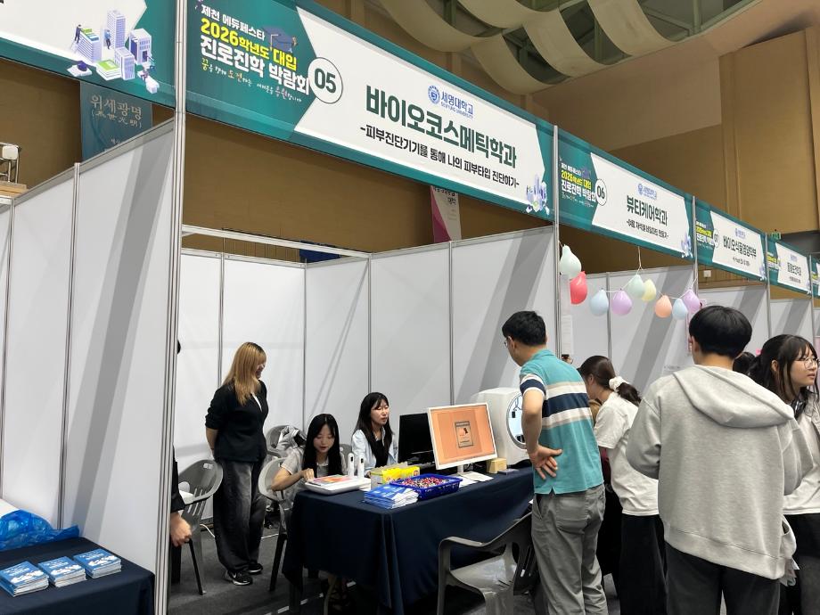 본문 시작 홈으로 커뮤니티 학과소개 학과과정 대학원 커뮤니티 연구동아리 홈페이지가이드 포토갤러리 학과공지 채용정보 학과일정 포토갤러리 유튜브 인스타그램 취업현황 학생회 조직도 졸업생 숏터뷰 포토갤러리 페이스북 트위터 프린트 2025학년도 제천대학입시박람회 바이오코스메틱학과 1859 2025-06-16 안녕하세요 바이오코스메틱학과입니다. 2025년 6월14일 토요일 세명대학교 체육관에서 제천 대학 입시박람회를 진행하였습니다. 세명대학교 바이오코스메틱학과에서는 개인맞춤형 화장품 체험으로 피부진단기기를 통해 개인별 피부타입 진단 체험과 DPPH assay실습을 통해 기능성 화장품 소재의 항산화 효과 체험과 학과 입시 상담을 진행하였습니다. 목록 이전제천 바이오밸리 테크노파크 스마트팩토리 현장견학 다음 2025학년도 아쿠아디테동아리 현장견학 담당부서 : 바이오코스메틱학과 담당자 : - 연락처 : 043-649-1638 최종수정일 : 2024-10-26 만족도조사 만족도 조사 이 페이지에서 제공하는 정보에 대하여 만족하시나요? 매우만족 만족 보통 불만족 매우불만족