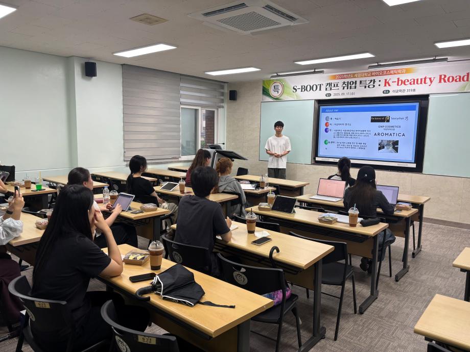 본문 시작 홈으로 커뮤니티 학과소개 학과과정 대학원 커뮤니티 연구동아리 홈페이지가이드 포토갤러리 학과공지 채용정보 학과일정 포토갤러리 유튜브 인스타그램 취업현황 학생회 조직도 졸업생 숏터뷰 포토갤러리 페이스북 트위터 프린트 2025학년도 1차 S-BOOT 특강_K-Beauty Road 바이오코스메틱학과 1153 2025-10-13 2025학년도 1차 S-BOOT 특강을 진행하였습니다. 목록 이전2025학년도 1차 화장품생명공학세미나 다음 2025학년도 2차 화장품생명공학세미나 담당부서 : 바이오코스메틱학과 담당자 : - 연락처 : 043-649-1638 최종수정일 : 2024-10-26 만족도조사 만족도 조사 이 페이지에서 제공하는 정보에 대하여 만족하시나요? 매우만족 만족 보통 불만족 매우불만족
