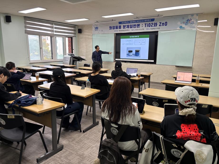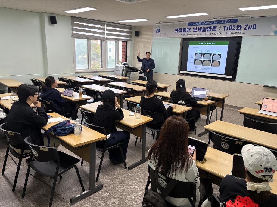 본문 시작 홈으로 커뮤니티 학과소개 학과과정 대학원 커뮤니티 연구동아리 홈페이지가이드 포토갤러리 학과공지 채용정보 학과일정 포토갤러리 유튜브 인스타그램 취업현황 학생회 조직도 졸업생 숏터뷰 포토갤러리 페이스북 트위터 프린트 2025학년도 3차 화장품생명공학세미나 바이오코스메틱학과 1350 2025-10-17 2025학년도 3차 화장품생명공학세미나를 진행했습니다. 목록 이전2025학년도 2차 S-BOOT 특강_Evolution of K-Beauty 다음 2025학년도 F.P.L 동아리 클렌징 오일 및 클렌징 밤 제조 실습 담당부서 : 바이오코스메틱학과 담당자 : - 연락처 : 043-649-1638 최종수정일 : 2024-10-26 만족도조사 만족도 조사 이 페이지에서 제공하는 정보에 대하여 만족하시나요? 매우만족 만족 보통 불만족 매우불만족