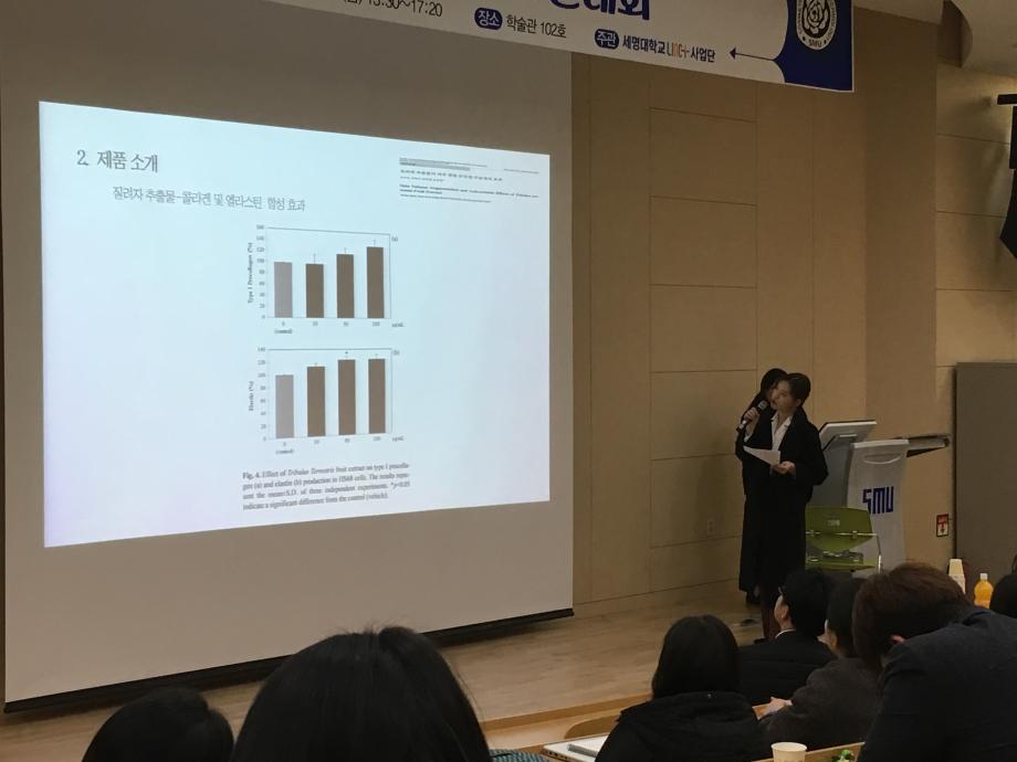 본문 시작 홈으로 커뮤니티 학과소개 학과과정 대학원 커뮤니티 연구동아리 홈페이지가이드 포토갤러리 학과공지 채용정보 학과일정 포토갤러리 유튜브 인스타그램 취업현황 학생회 조직도 졸업생 숏터뷰 포토갤러리 페이스북 트위터 프린트 제1회 화장품뷰티생명공학부 캡스톤 디자인 대회 화장품뷰티생명공학부 7438 2018-12-04 지난 11월 23일 학술관 102호에서 장혜인 교수님의 지도하에 제1회 캡스톤디자인 대회가 열렸습니다. 총 17개 조가 참가하여 다양한 화장품에 대한 아이디어를 발표하였고 항목별로 평가하는 시간을 가졌습니다. 발표하는 학생뿐만 아니라 평가를 하는 학생들도 질문과 답변을 주고 받으며 열의가 돋보이는 발표시간이었습니다. 목록 이전제4회 국내 화장품전문가 초청 세미나 다음 2018 동계 LINC+ 바이오산업품질관리학 학술 특강 담당부서 : 바이오코스메틱학과 담당자 : - 연락처 : 043-649-1638 최종수정일 : 2024-10-26 만족도조사 만족도 조사 이 페이지에서 제공하는 정보에 대하여 만족하시나요? 매우만족 만족 보통 불만족 매우불만족