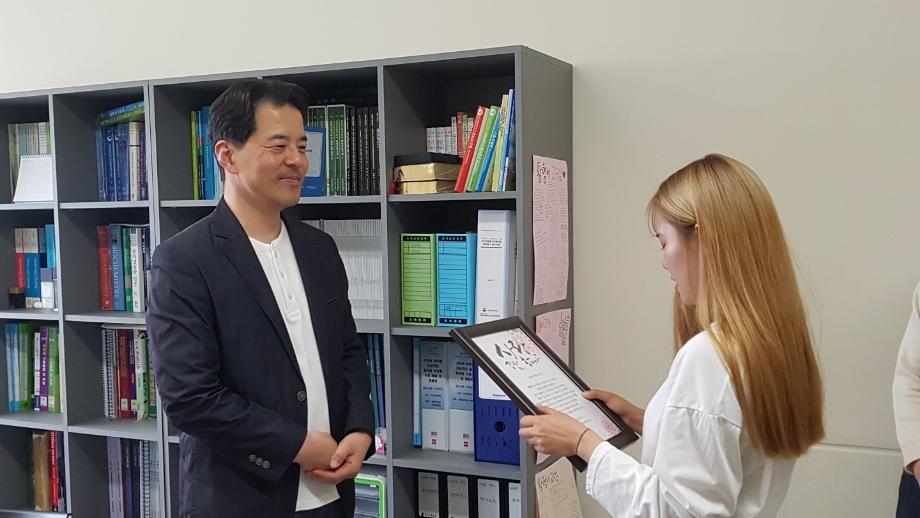본문 시작 홈으로 커뮤니티 학과소개 학과과정 대학원 커뮤니티 연구동아리 홈페이지가이드 포토갤러리 학과공지 채용정보 학과일정 포토갤러리 유튜브 인스타그램 취업현황 학생회 조직도 졸업생 숏터뷰 포토갤러리 페이스북 트위터 프린트 스승의 날, 학생회에서 준비한 행사 화장품뷰티생명공학부 7543 2019-05-15 화장품뷰티생명공학부의 학생회에서 스승의 날을 맞이하여, 교수님들께 학생들을 대표하여 감사의 마음을 전하는 시간을 가졌습니다. 존경의 마음을 담은 예쁜 꽃과 롤링페이퍼를 준비한 우리 학생들 덕분에 교수님들과 얼굴에 웃음꽃이 피었습니다. 조교들까지 챙겨준 학생회 친구들 덕분에 더 열심히 일해야겠습니다^^ 목록 이전의림여자중학교 중등연계 프로그램 시행 다음 제29회 청룡체전 시행 담당부서 : 바이오코스메틱학과 담당자 : - 연락처 : 043-649-1638 최종수정일 : 2024-10-26 만족도조사 만족도 조사 이 페이지에서 제공하는 정보에 대하여 만족하시나요? 매우만족 만족 보통 불만족 매우불만족