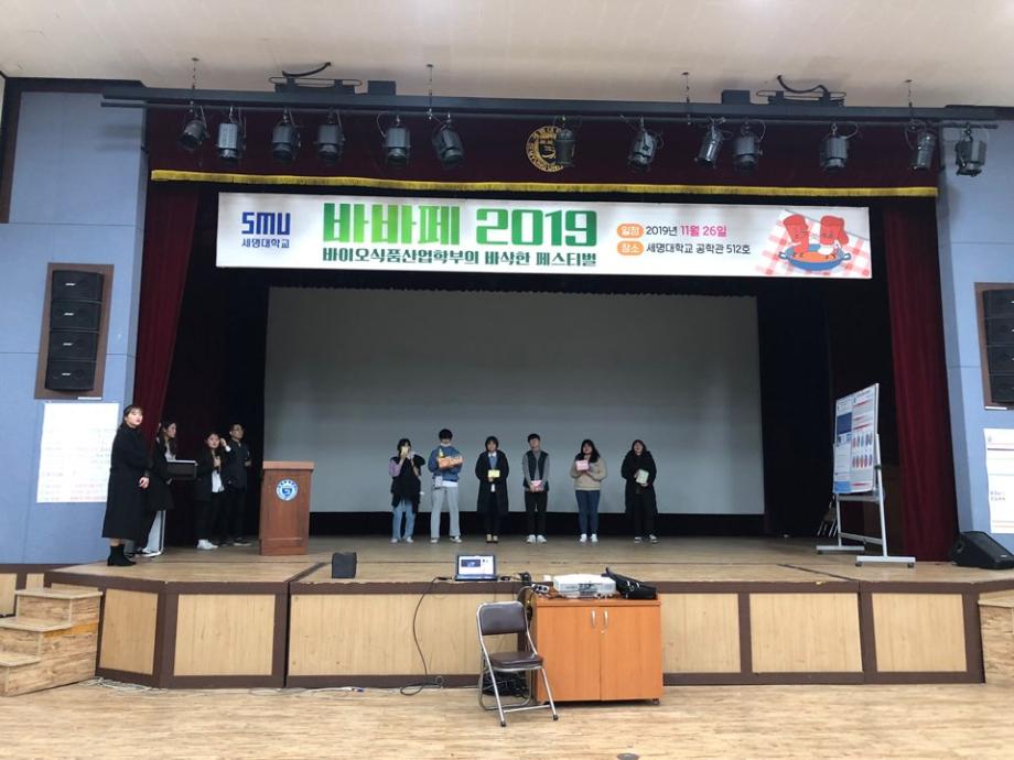 본문 시작 홈으로 커뮤니티 학부소개 진로·취업 교육과정 커뮤니티 대학원 입학상담 홈페이지가이드 갤러리 공지사항 문의게시판 학생회 전공동아리 동문회 갤러리 전공자료실 Youtube Instagram Facebook Blog 갤러리 페이스북 트위터 프린트 2019 바바페 (바이오식품산업학부 학술제) 바이오식품산업학부 5851 2019-11-28 2019년 11월 26일(화) 공학관 512호에서 진행된 바이오식품산업학부 바삭한 페스티발에 재학생 약 190명이 참여했으며 조리경연대회, 논문 및 현장실습 발표, O/X퀴즈를 진행하였다. 목록 이전실험조리 프로젝트 3( 단체급식용 샌드위치 제조 판매)실시 다음 학생경험중심 발표회 담당부서 : 바이오식품산업학부 담당자 : - 연락처 : 043-649-1431 최종수정일 : 2024-10-26 만족도조사 만족도 조사 이 페이지에서 제공하는 정보에 대하여 만족하시나요? 매우만족 만족 보통 불만족 매우불만족