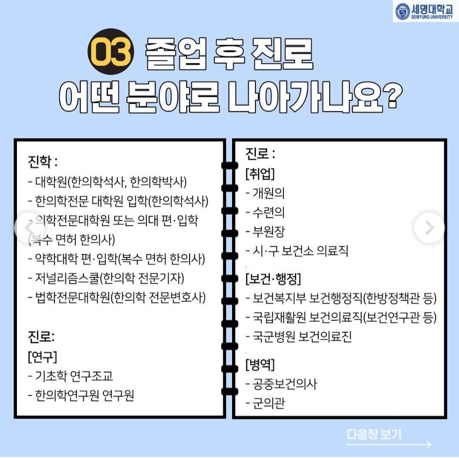 본문 시작 홈으로 대학소식 대학소개 교수소개 대학과정 커뮤니티 대학원 대학소식 홈페이지가이드 포토갤러리 학과공지 포토갤러리 발전기금 위원회 관련사이트 포토갤러리 페이스북 트위터 프린트 한의예과 , 한의학과는 어떤 학과? 한의과대학 3048 2022-01-06 목록 이전세명대학교 한의과대학 미래설계 콘서트 개최 다음 한의학교육평가인증이란? 담당부서 : 한의과대학 담당자 : - 연락처 : 043-649-1701 최종수정일 : 2024-10-26 만족도조사 만족도 조사 이 페이지에서 제공하는 정보에 대하여 만족하시나요? 매우만족 만족 보통 불만족 매우불만족