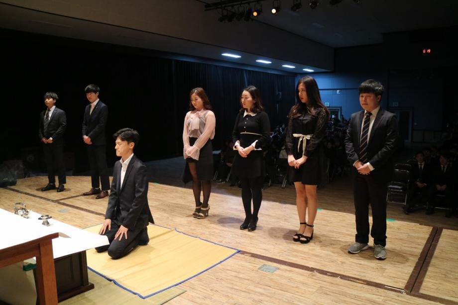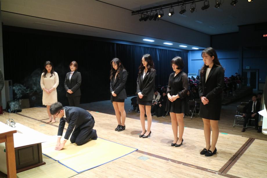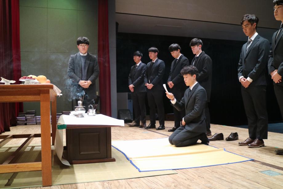 이제 드디어 본격적인 본과 진입식~! 예식은 조선의 명의 허준에게 제사를 지내는 형식으로 치러지는데요. 학생들은 모두 예를 갖추기 위해 정장을 차려입고 와 엄숙한 태도와 마음으로 예식을 치룹니다. 이를 통해 진정한 ‘의자(醫者)’로서의 사명감과 책임감을 되새기고, 앞으로 학업에 더욱 더 충실하겠다는 마음을 다지는 시간을 갖습니다.