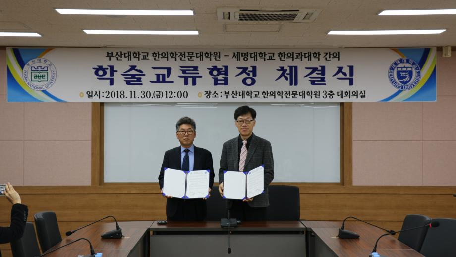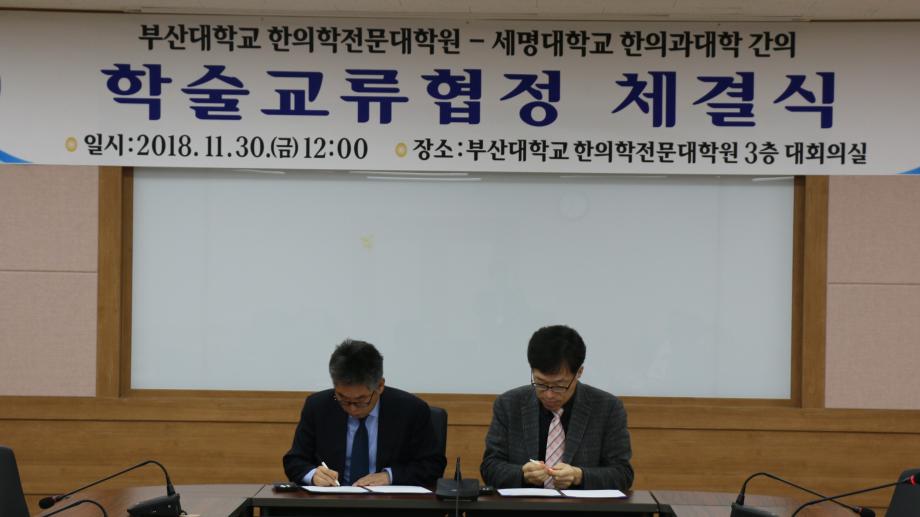 본문 시작 홈으로 대학소식 대학소개 교수소개 대학과정 커뮤니티 대학원 대학소식 홈페이지가이드 포토갤러리 학과공지 포토갤러리 발전기금 위원회 관련사이트 포토갤러리 페이스북 트위터 프린트 세명대학교 한의과대학- 부산대학교 한의학전문대학원 MOU 체결 한의과대학 7194 2018-12-05 세명대학교 한의과대학(학장 김호현)은 2018년 11월 30일 부산대학교 한의학전문대학원과 한의학 교육의 협력과 발전을 위해 상호협력협약을 체결하였다. 두 기관은 상호협력협약을 통해 한의학 임상교육에 필요한 임상실습지침서와 임상실습 프로그램을 연구・개발・시행・평가하며, 표준화환자를 훈련・시행・평가하며, 원활한 임상실습을 위해 상호 파견과 참관하는 분야에서 공동의 노력을 다함으로써 한의학 임상교육 발전에 큰 기여를 하리라 기대하고 있다. 목록 이전2018년 미니체육대회 다음 2018학년도 학위수여식 담당부서 : 한의과대학 담당자 : - 연락처 : 043-649-1701 최종수정일 : 2024-10-26 만족도조사 만족도 조사 이 페이지에서 제공하는 정보에 대하여 만족하시나요? 매우만족 만족 보통 불만족 매우불만족