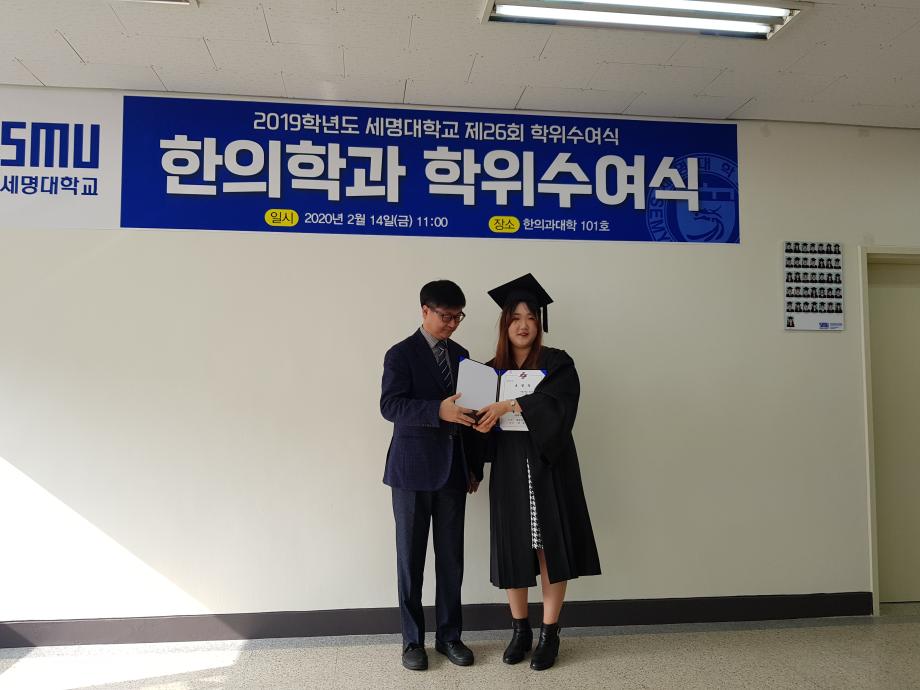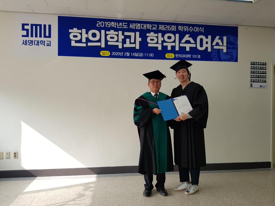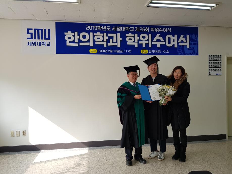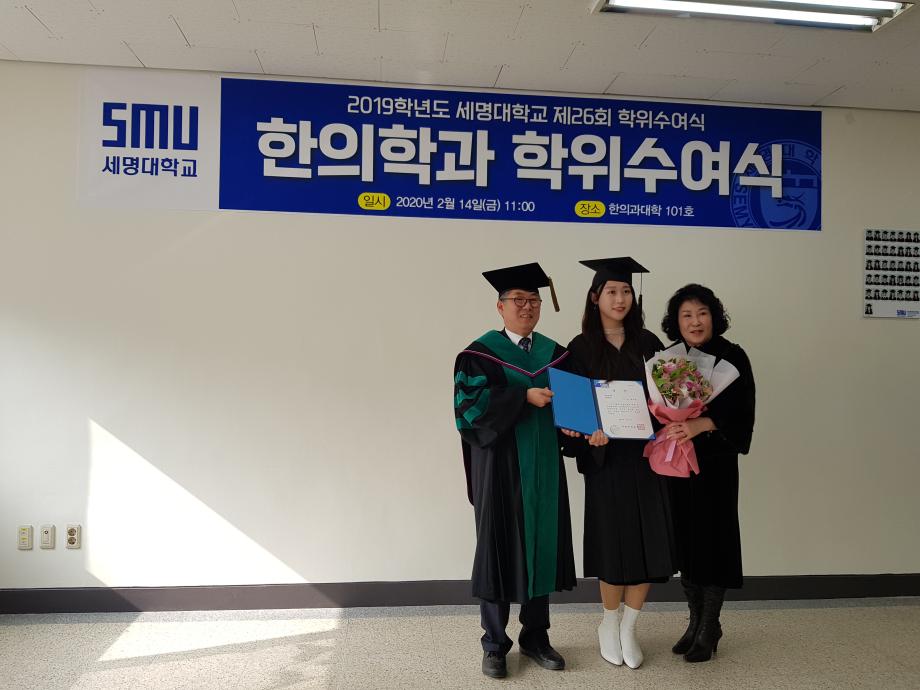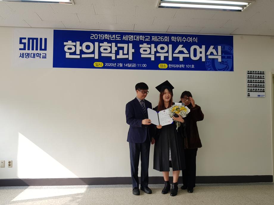 본문 시작 홈으로 대학소식 대학소개 교수소개 대학과정 커뮤니티 대학원 대학소식 홈페이지가이드 포토갤러리 학과공지 포토갤러리 발전기금 위원회 관련사이트 포토갤러리 페이스북 트위터 프린트 2019학년도 한의학과 전기 학위수여식 한의과대학 12289 2020-02-18 한의학과 졸업생들 모두에게 졸업을 축하드립니다. 코로나19의 발생으로 교육부 지침에 따라 세명대학교 공식 학위수여식이 취소되어 한의과대학에서 졸업자 시상식(총장상, 한의사협회장상, 한의학회장상, 동문회장상 등)으로 조촐하게 진행하였습니다. 아울러, 졸업예정자의 학사 학위(졸업장)은 학과사무실에서 택배로 개별 송부하였음을 알려드립니다. 목록 이전2019학년도 한의학교육 교수워크샵 다음 제76회 한의사 국가고시 4년 연속 재학생 100% 합격 담당부서 : 한의과대학 담당자 : - 연락처 : 043-649-1701 최종수정일 : 2024-10-26 만족도조사 만족도 조사 이 페이지에서 제공하는 정보에 대하여 만족하시나요? 매우만족 만족 보통 불만족 매우불만족